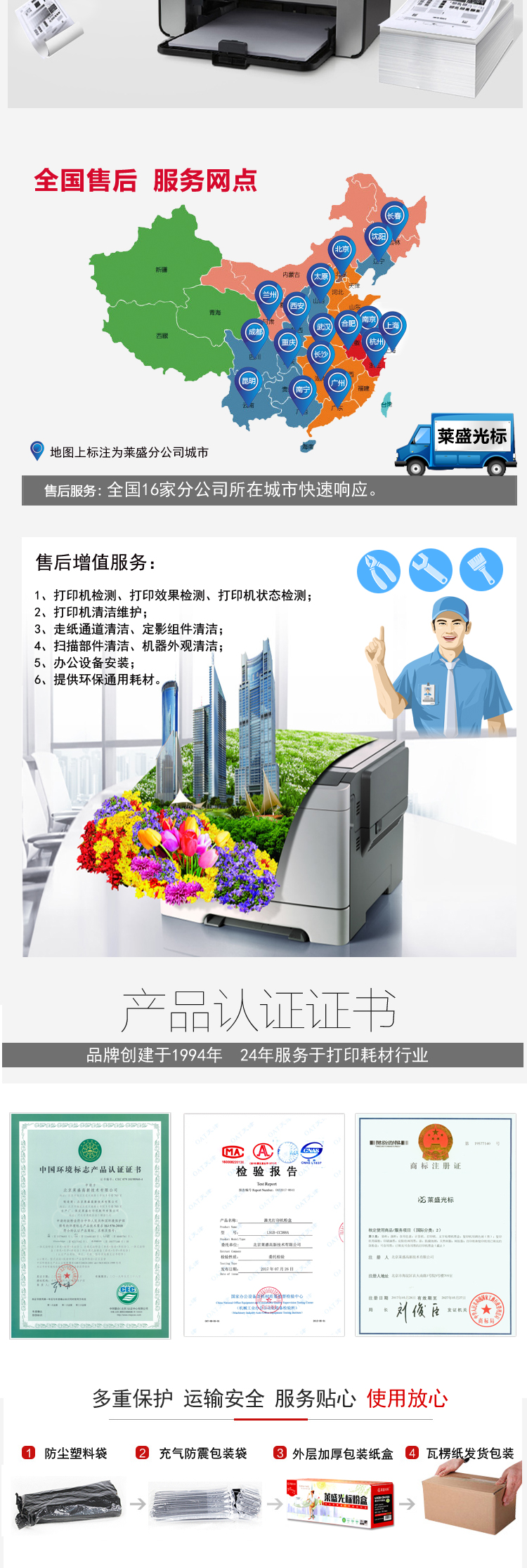 辦公耗材類:如送達(dá)的商品外包裝已經(jīng)被打開,請您拒收商品。產(chǎn)品使用中出現(xiàn)故障后,將送達(dá)相應(yīng)廠商指定的檢測中心進(jìn)行檢驗(yàn),依據(jù)檢測中心出具的相關(guān)《產(chǎn)品檢測報(bào)告》確定解決方案,檢測中心的《產(chǎn)品檢測報(bào)告》是我們確定更換的唯一標(biāo)準(zhǔn)。