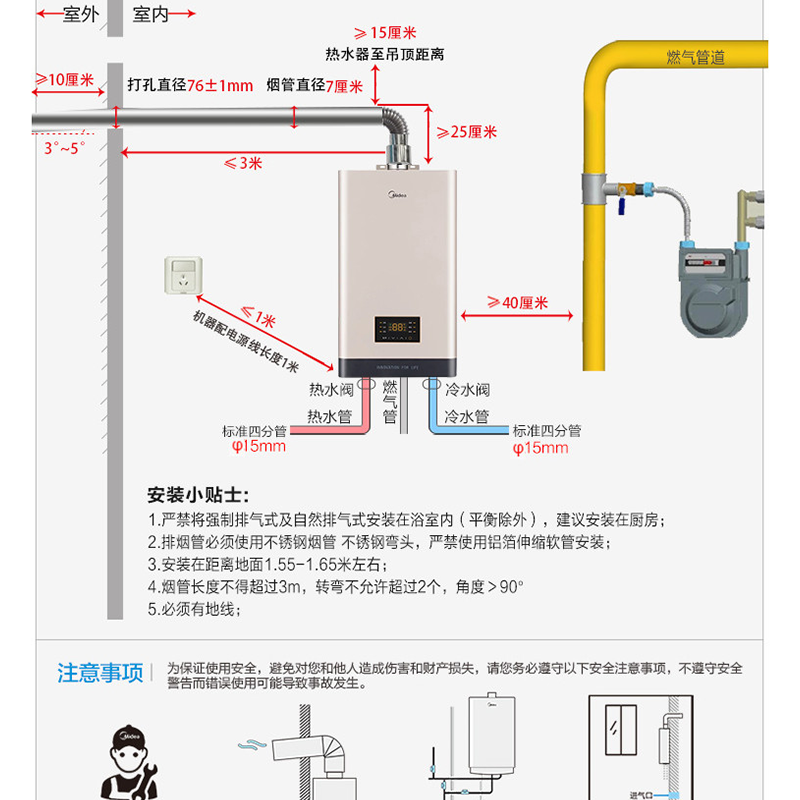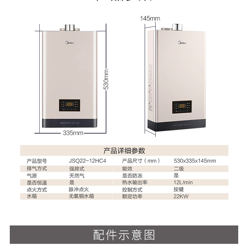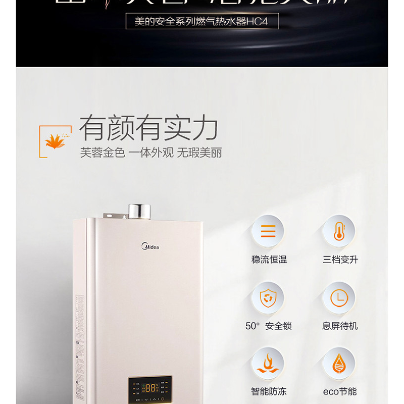 美的(Midea) JSQ22-12HC4 12升 三檔變升 穩(wěn)流恒溫 燃?xì)鉄崴?天然氣