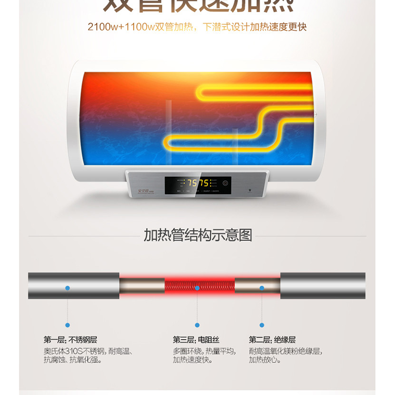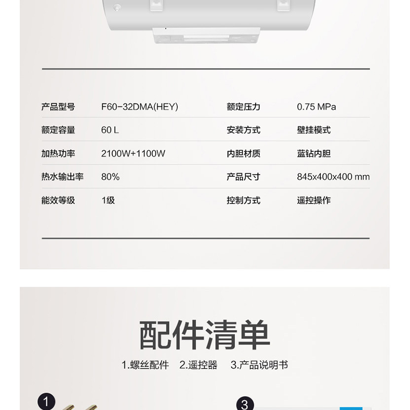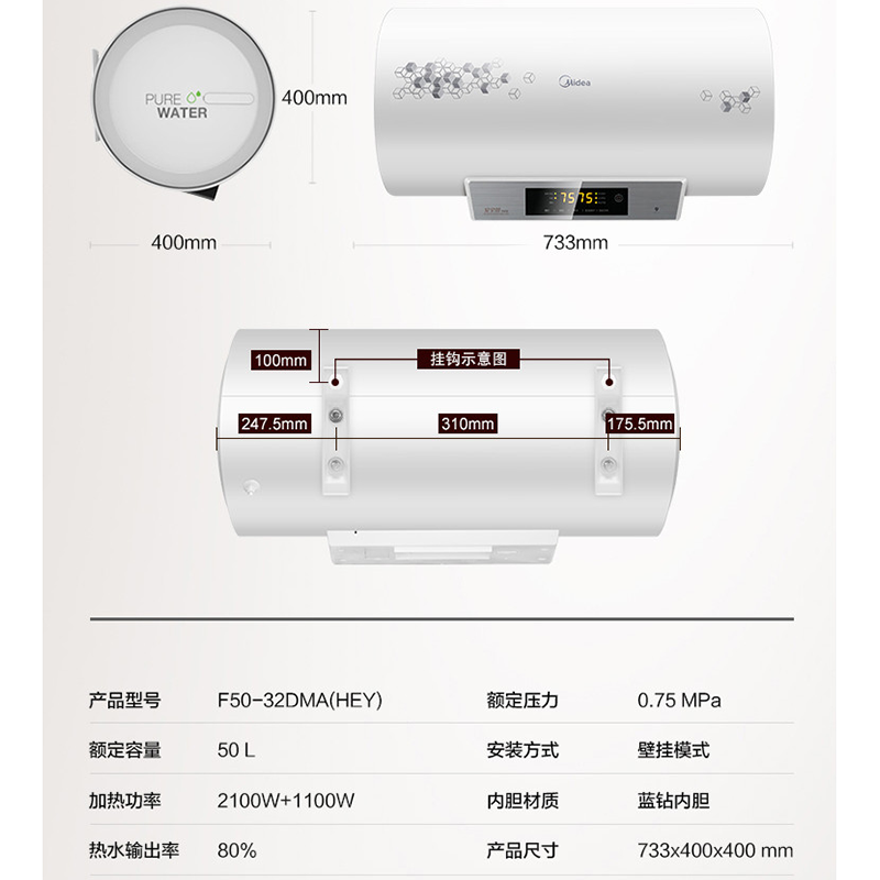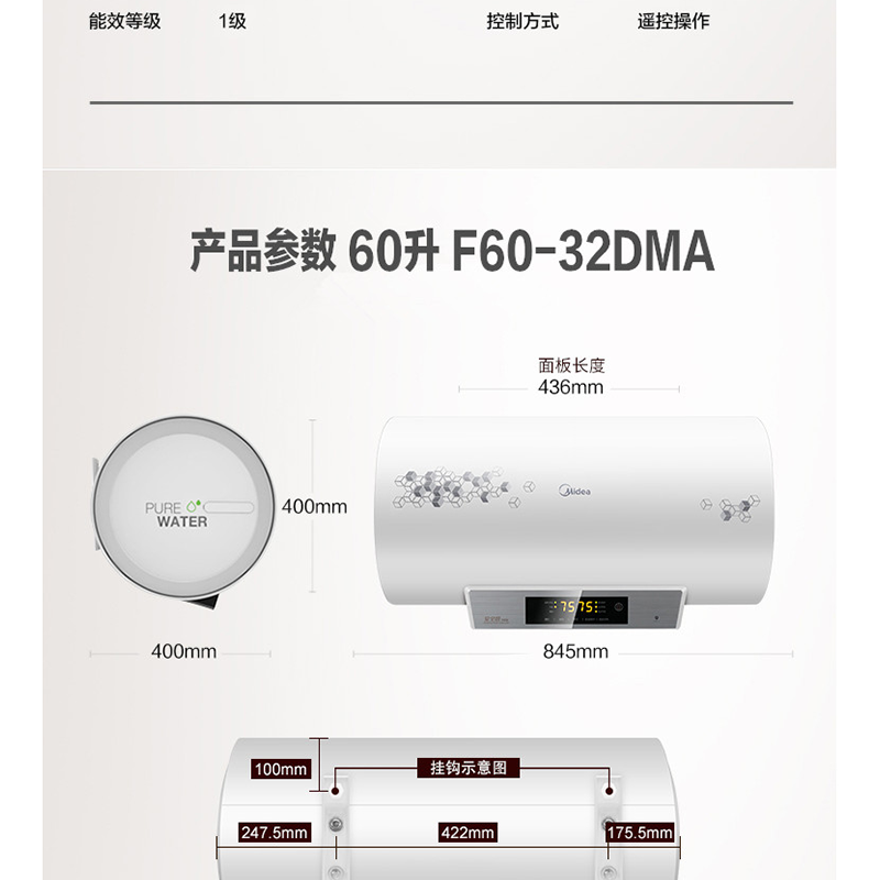 美的(Midea) F50-32DMA(HEY) 雙重防漏電預(yù)約洗浴無線遙控一鍵自動(dòng)關(guān)機(jī)60升電熱水器