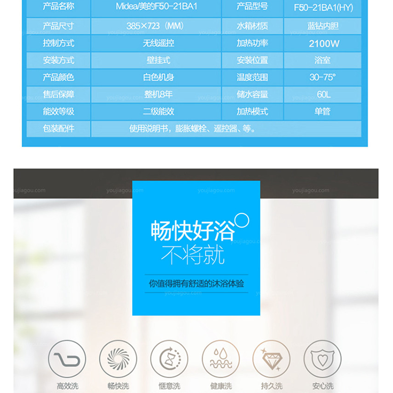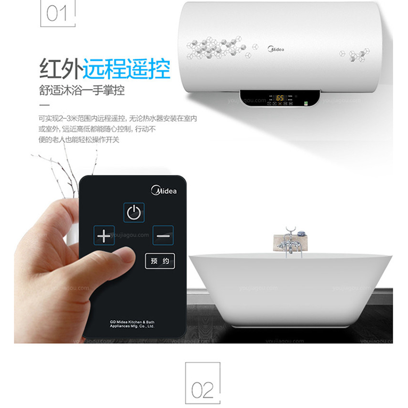 美的(Midea) F40-21BA1(HY) 50升電熱水器 家用遙控恒溫速熱