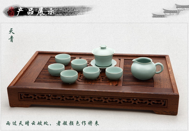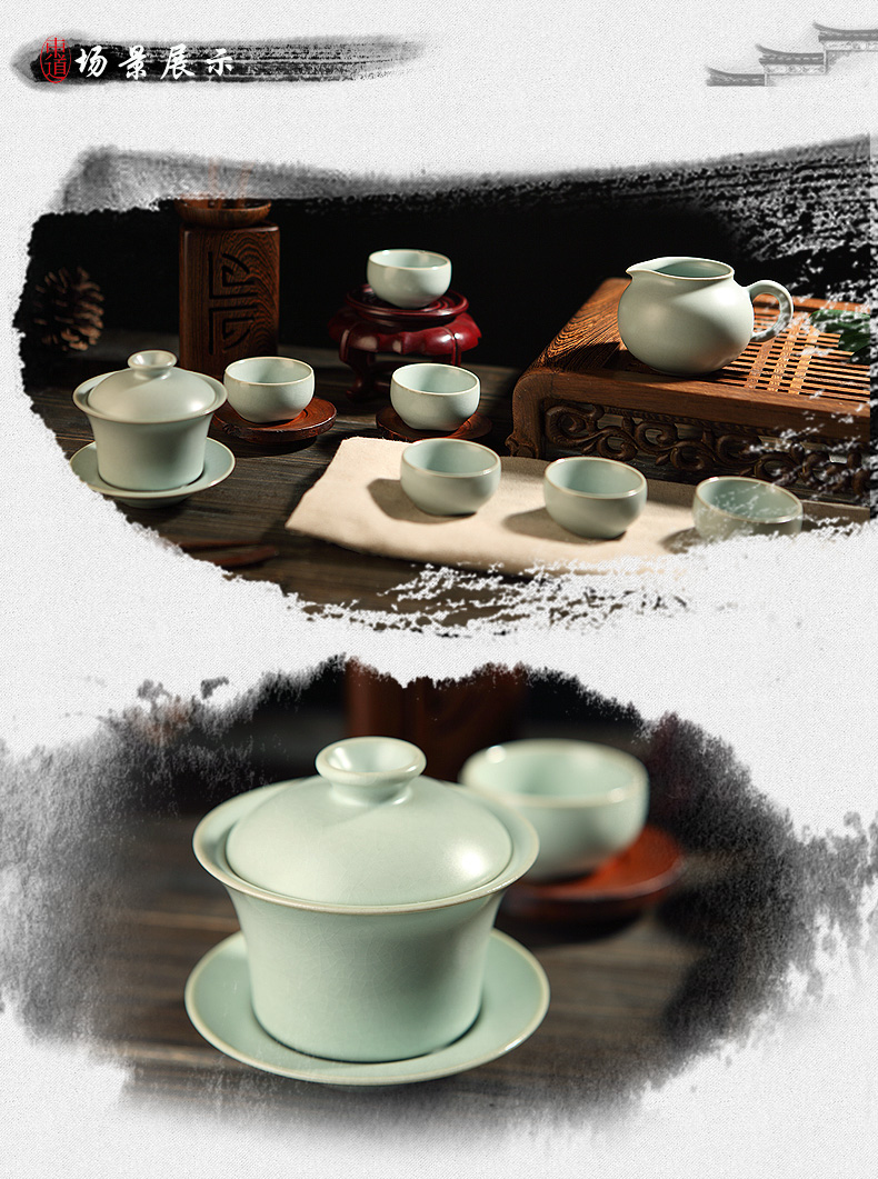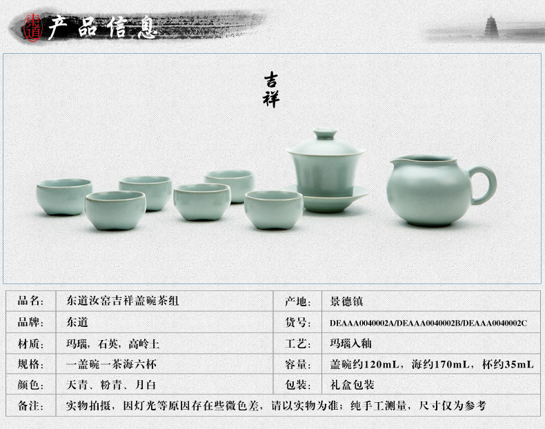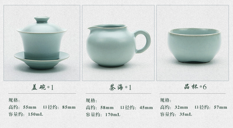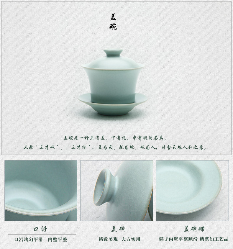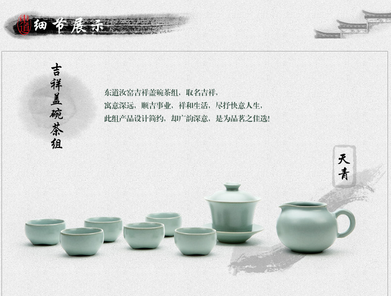 東道汝窯 功夫茶具套裝 吉祥蓋碗茶組(天青色)