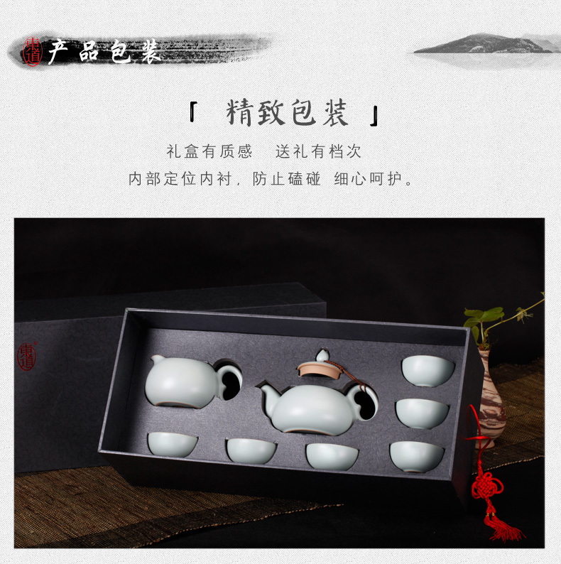 東道汝窯 功夫茶具套裝 祈福茶壺半組(天青色)