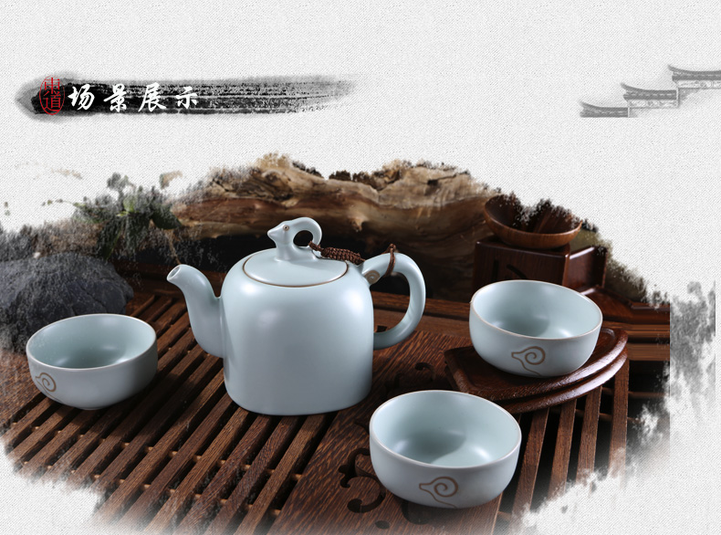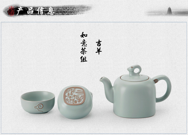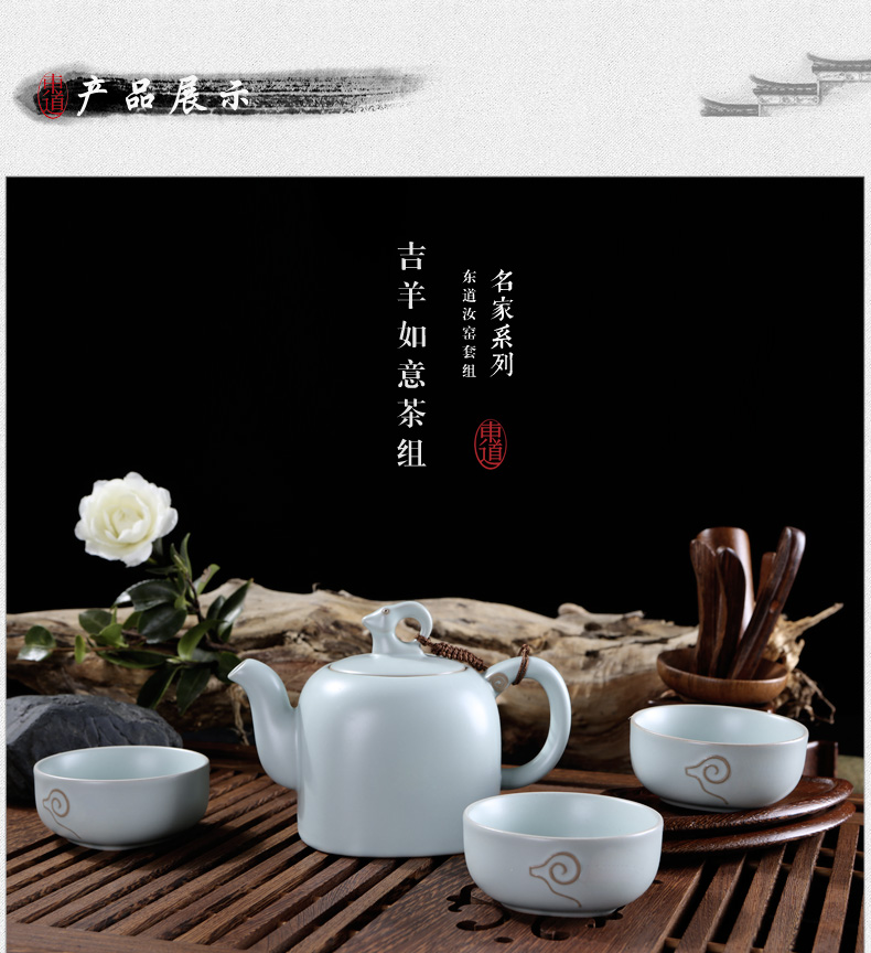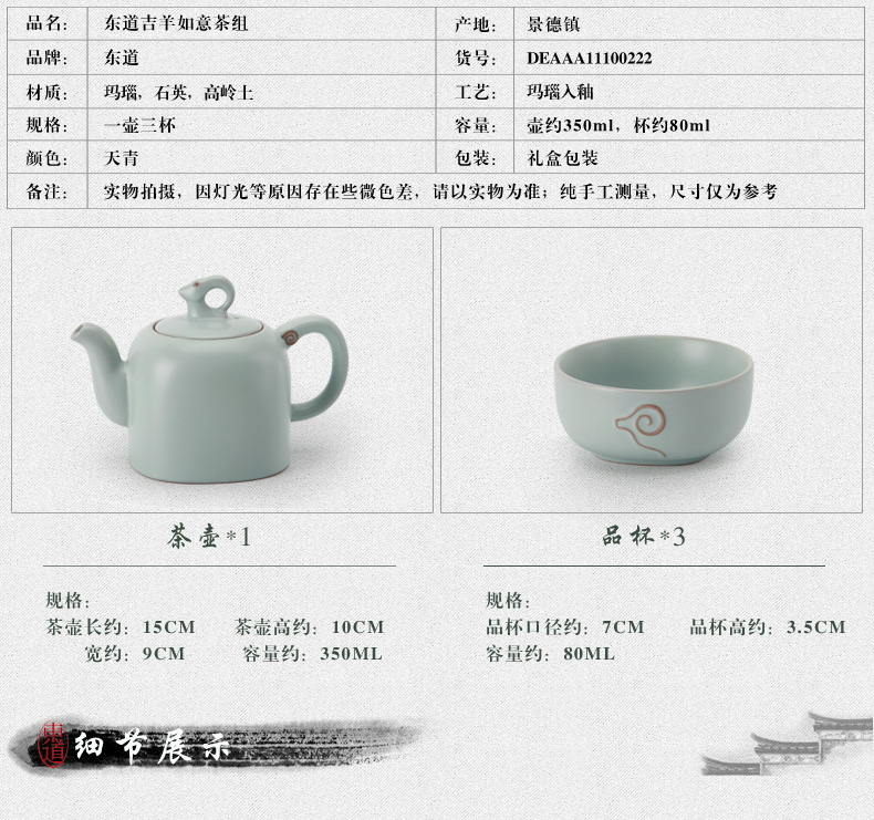 東道汝窯 功夫茶具套裝 吉羊如意茶組/限量版(天青色)