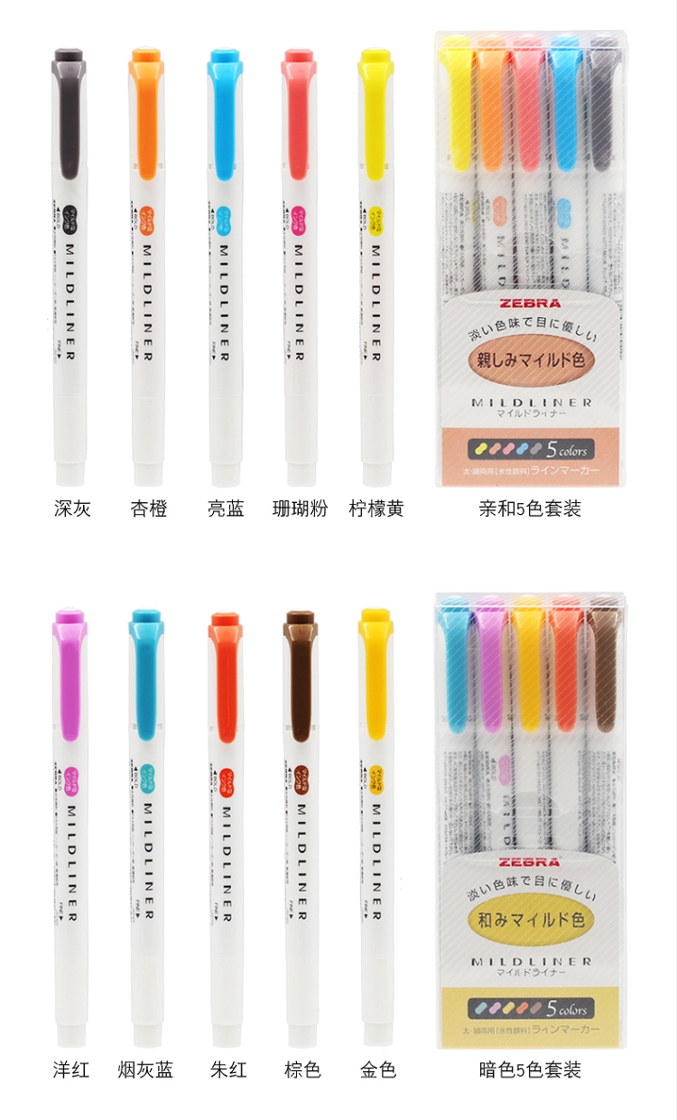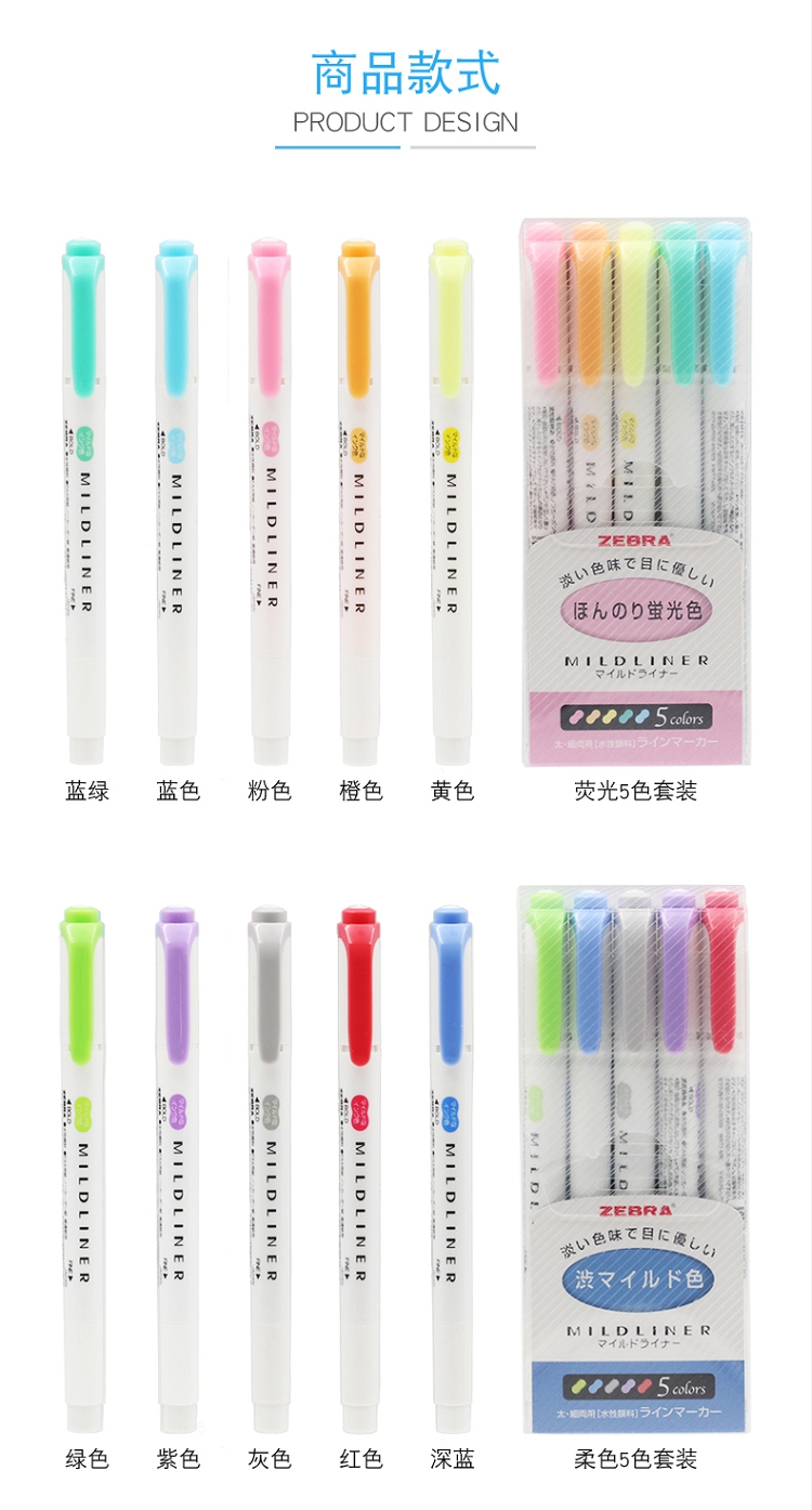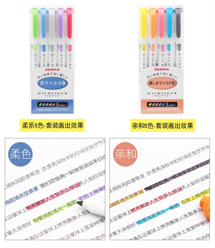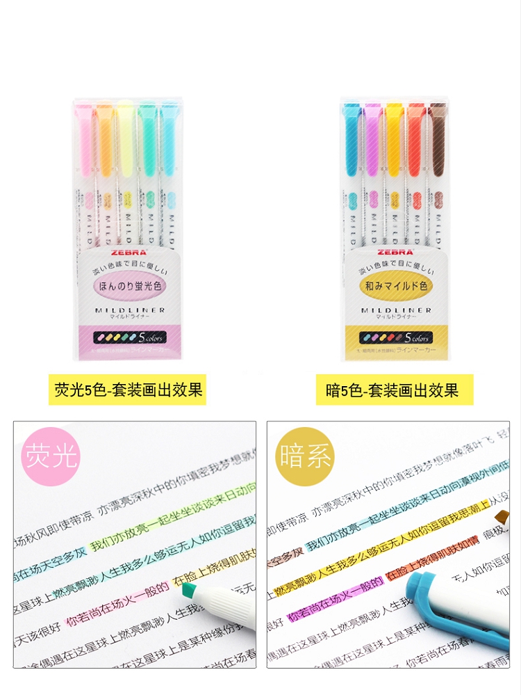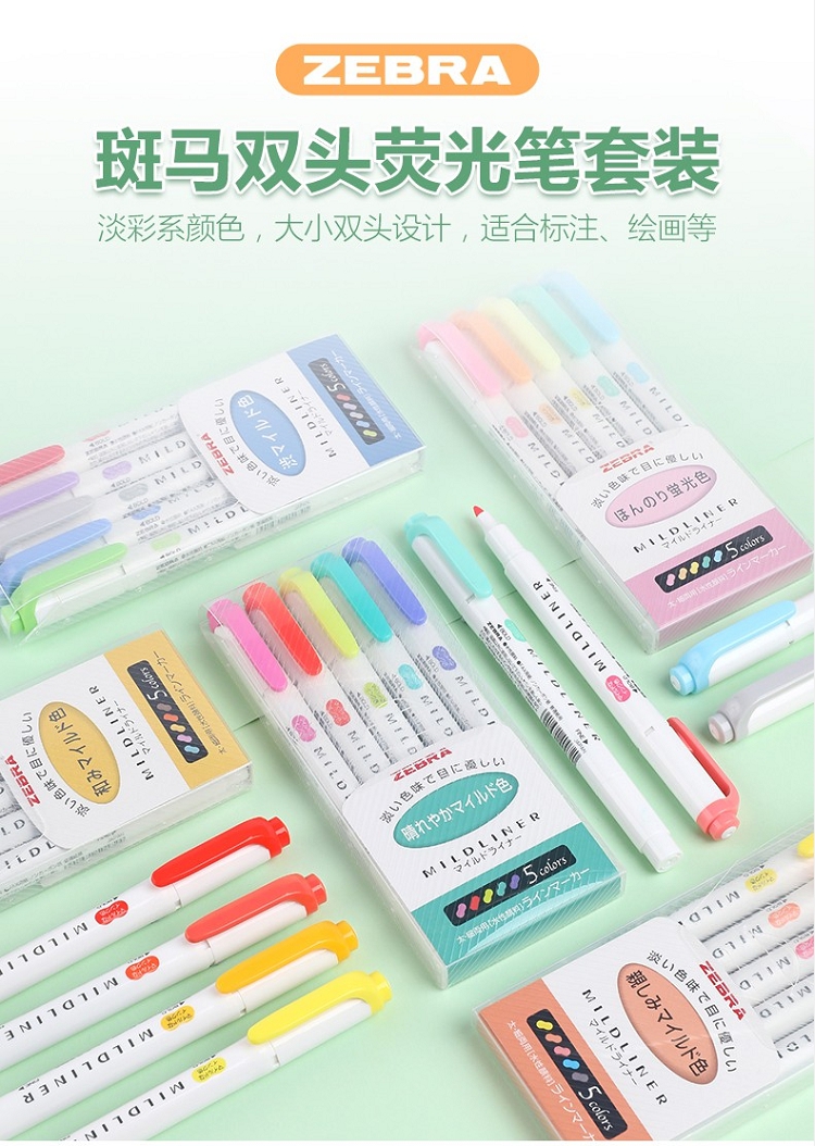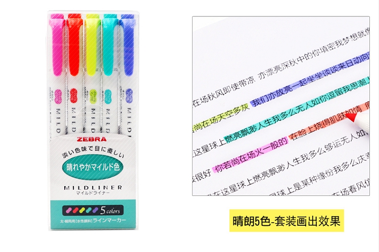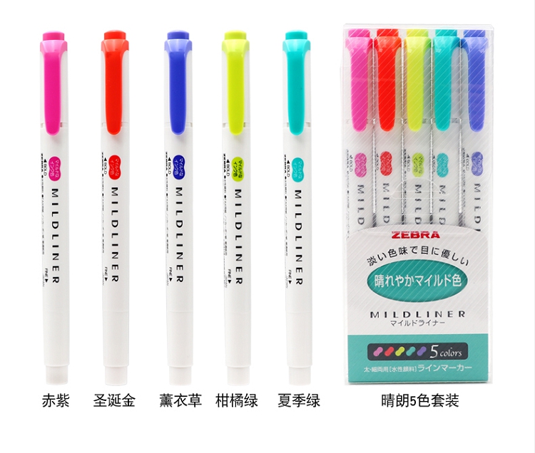 斑馬(ZEBRA) wkt7 淡色系列5色雙頭熒光筆
