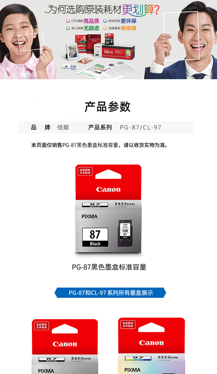佳能(Canon) PG-87 彩色打印機(jī)墨盒/標(biāo)準(zhǔn)容量(黑色)