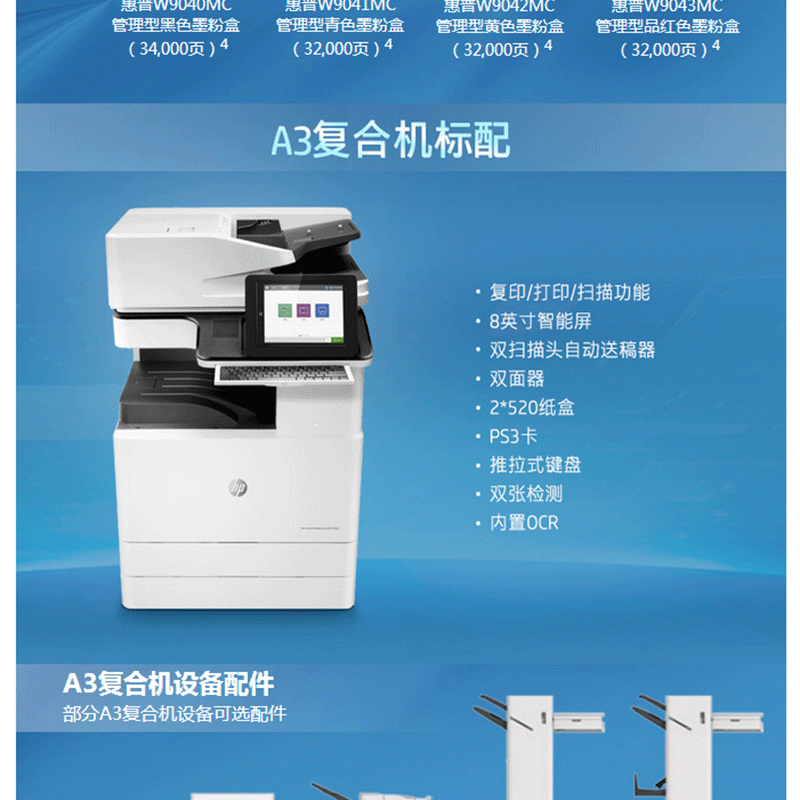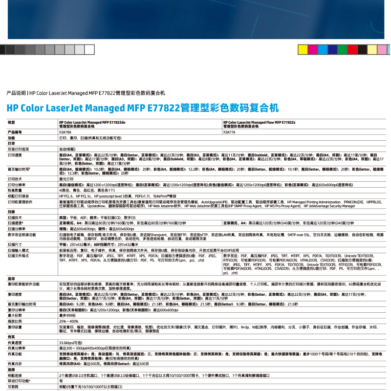 惠普(HP) LaserJet Managed Flow MFP E77822z A3幅面管理型數(shù)碼 彩色激光多功能一體機(jī)(打印/復(fù)印/掃描)