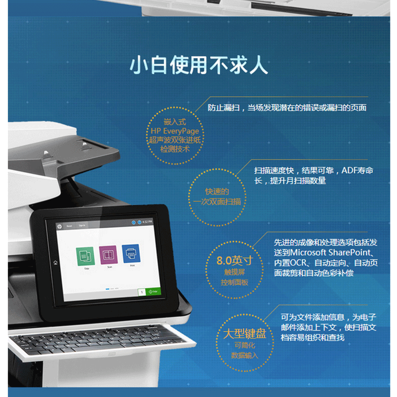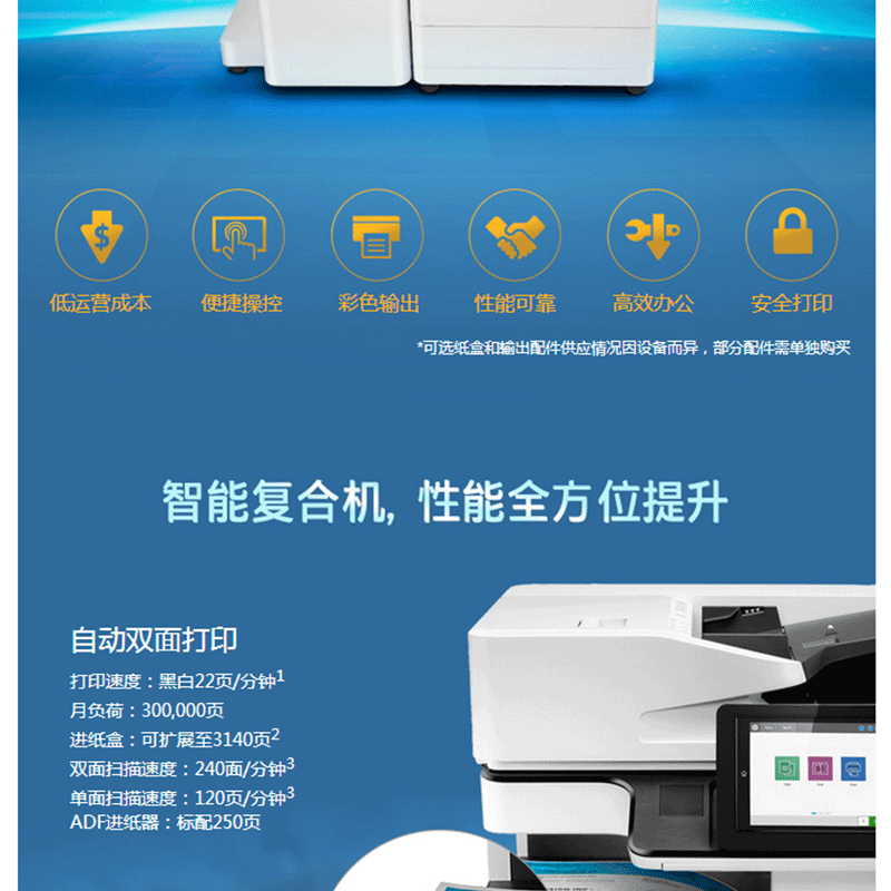 惠普新品!超低運(yùn)營成本!黑彩同速:22頁/分鐘,ADF容量:250頁 ?