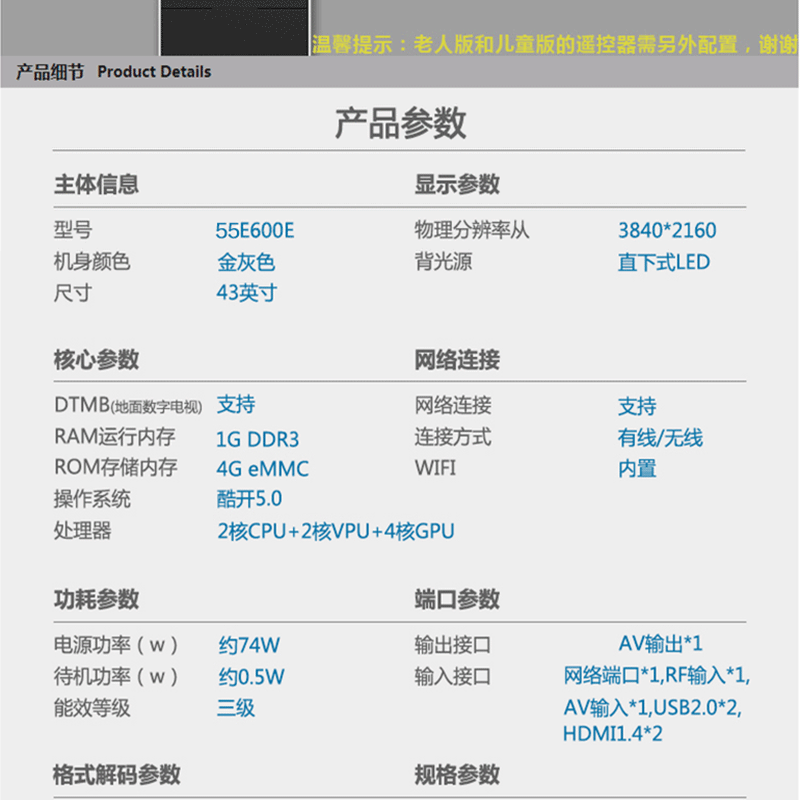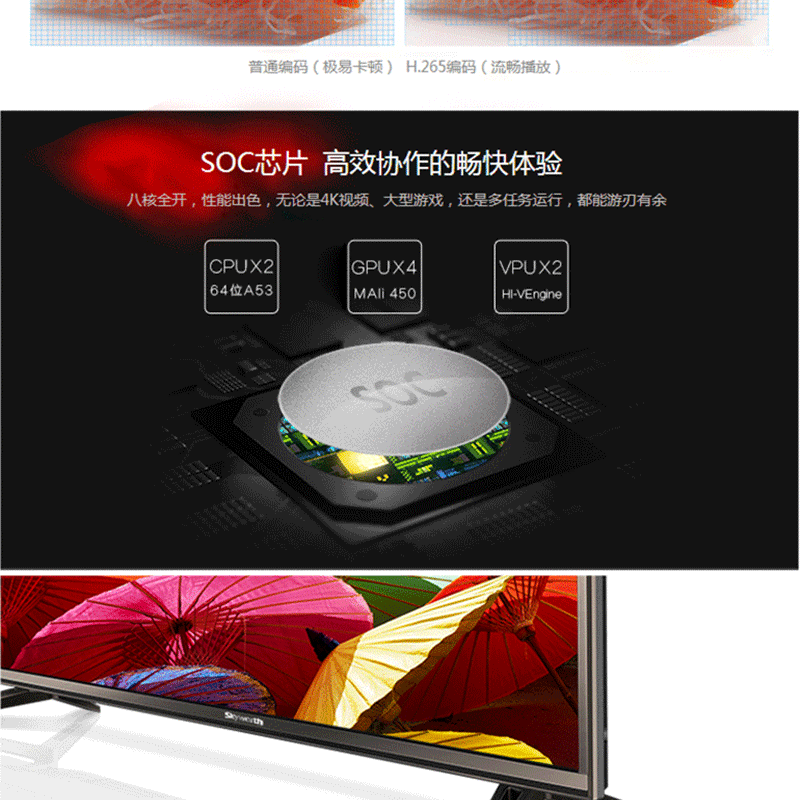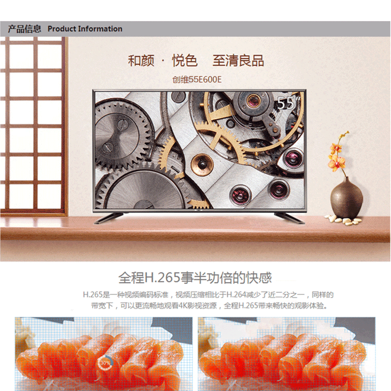 創(chuàng)維(Skyworth) 55E600E 10核超薄窄邊4K超高清液晶電視機(jī) 55英寸/金灰色(吊裝)