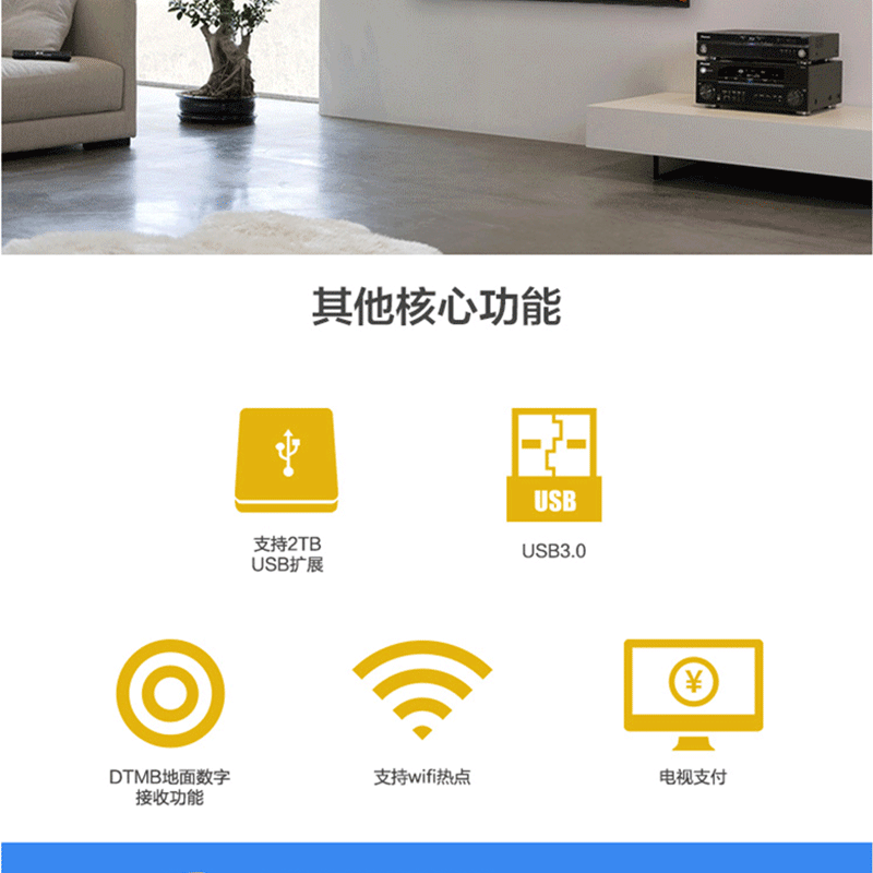 智能10核處理器,大屏視界,客廳耀眼巨作。內(nèi)置WIFI。 ?