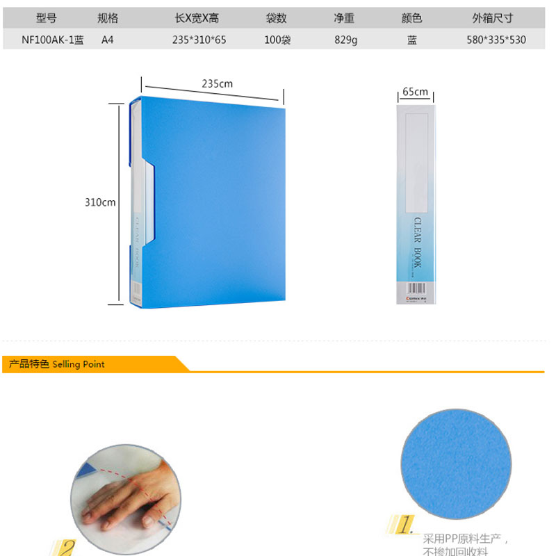 齊心(COMIX) NF100AK-1 辦公必備大容量資料冊(cè) A4 100頁(yè)+外殼