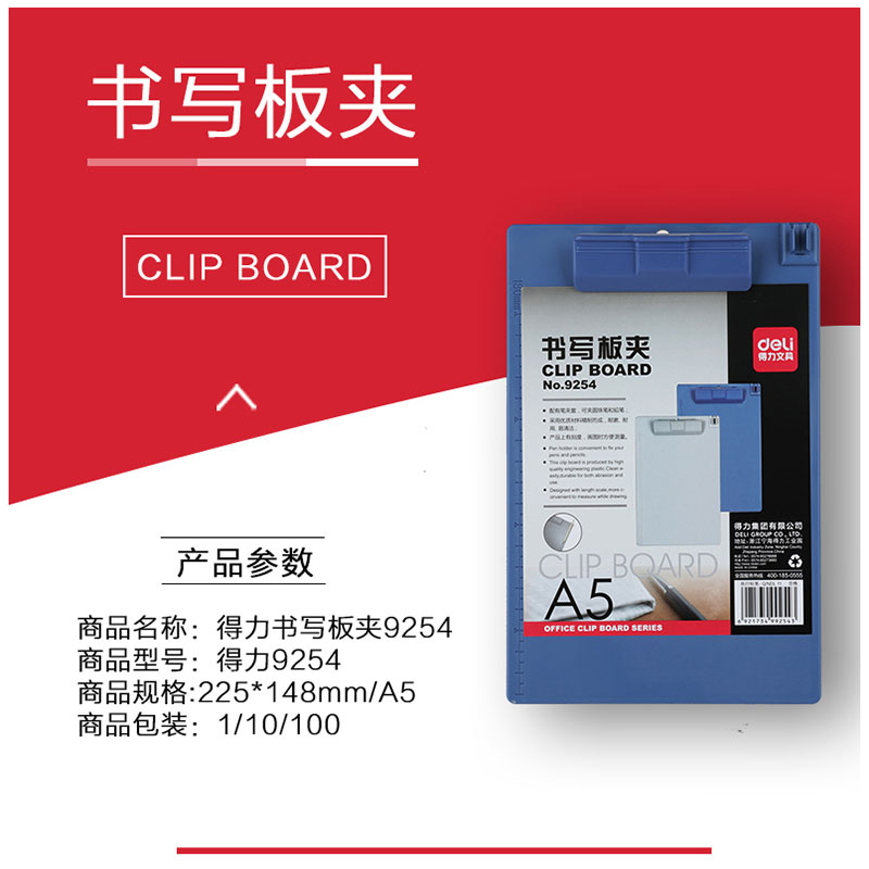 得力(deli) 9254 塑料書(shū)寫(xiě)板夾適用于A4紙 顏色隨機(jī)