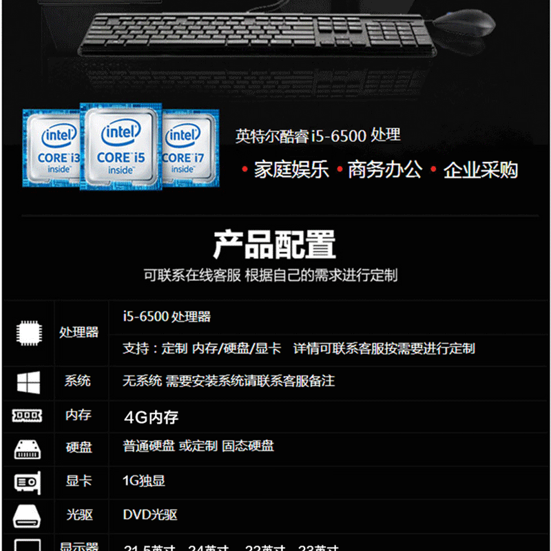 • i5-6500/4G/1T/21.5英寸/1G獨(dú)顯 i5-6500/4G/1T/24英寸/1G獨(dú)顯 i5-6500/4G/1T/22英寸/1G獨(dú)顯 i5-6500/4G/1T/23英寸/1G獨(dú)顯 i5-6500/4G/1T/21.5英寸/2G獨(dú)顯 i5-6500/4G/1T/24英寸/2G獨(dú)顯 i5-6500/4G/1T/22英寸/2G獨(dú)顯 i5-6500/4G/1T/23英寸/2G獨(dú)顯