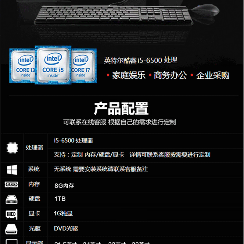 H110 PCI主板/DVDRW/1G顯卡/20L機箱/USB前2后4/鍵盤鼠標 ?