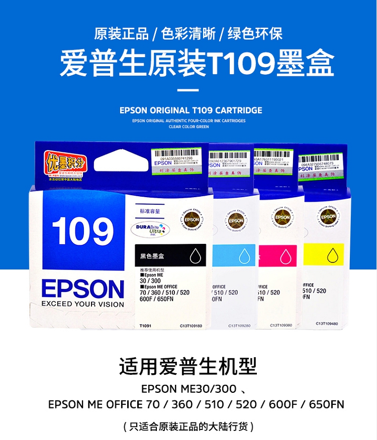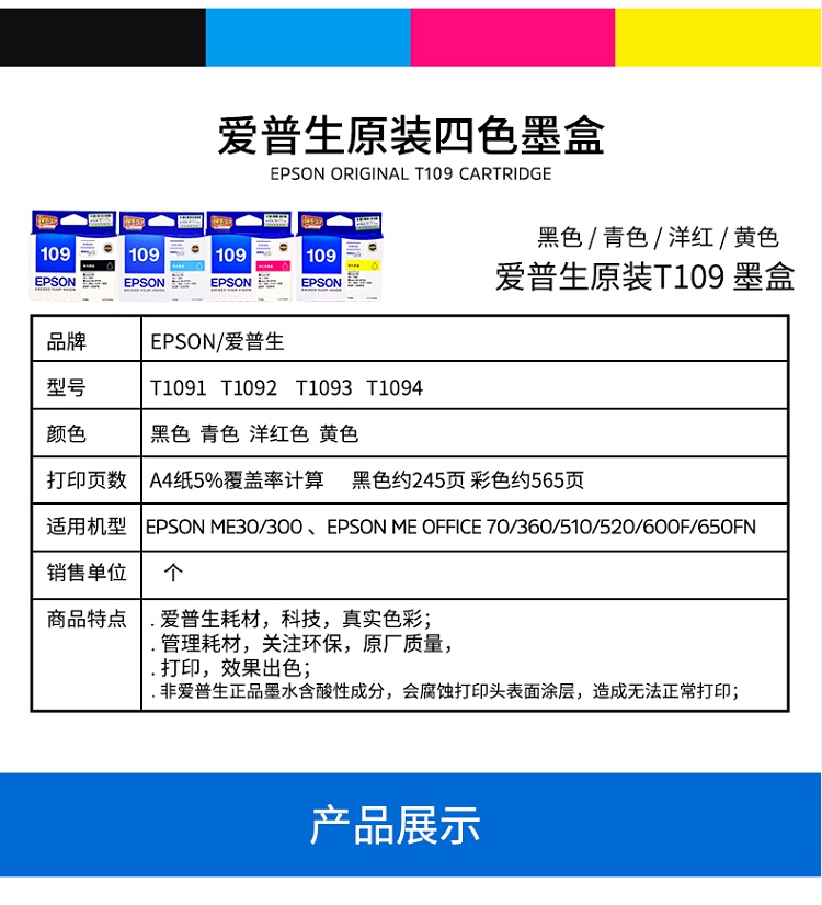 愛普生(EPSON) T1094 彩色打印機(jī)墨盒C13T109480(黃色)