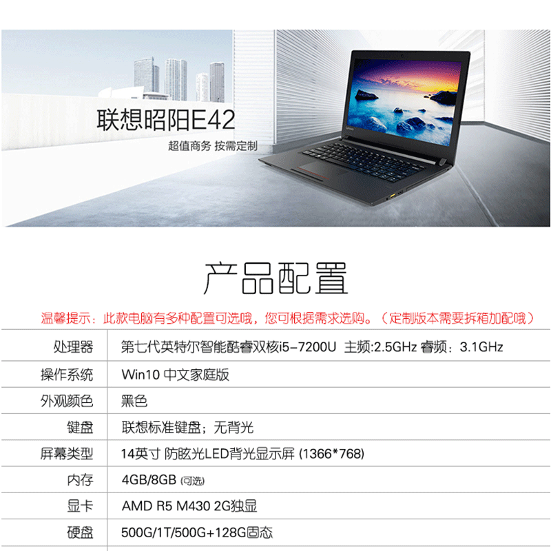 聯(lián)想(Lenovo) 昭陽E42-80 商務(wù)筆記本電腦(i5-7200)4G內(nèi)存 500G硬盤/14.0英寸