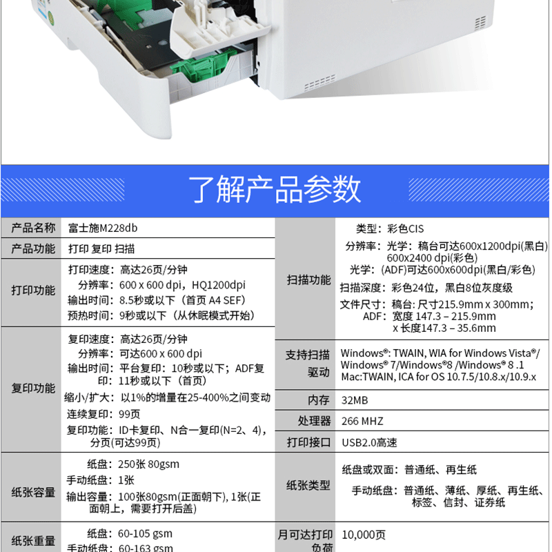 富士施樂(FujiXerox) M228db 黑白激光多功能一體機(jī)(打印/復(fù)印/掃描)