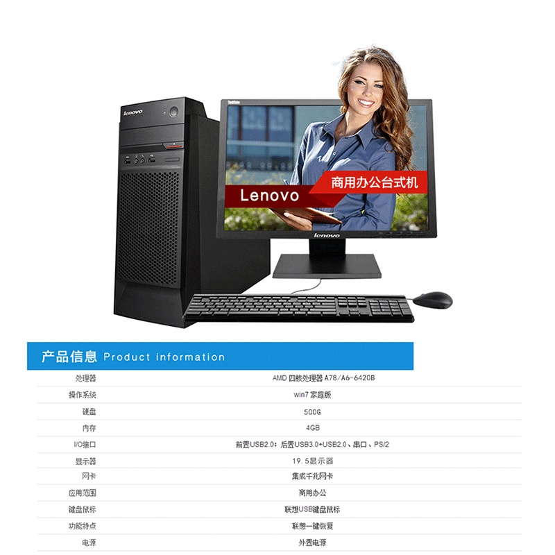 聯(lián)想(Lenovo) M5900-B405 臺式電腦(A6-6420B 4GB 500GB)