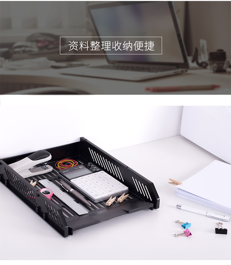 得力(deli) 9209 牢固耐用三層文件座文件盤文件框(黑色)