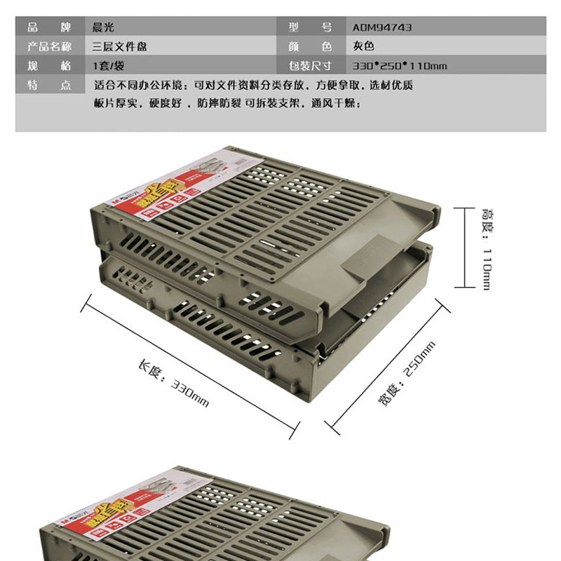 晨光(M&G) ADM94743 三層文件盤文件欄文件架文件座(灰色)