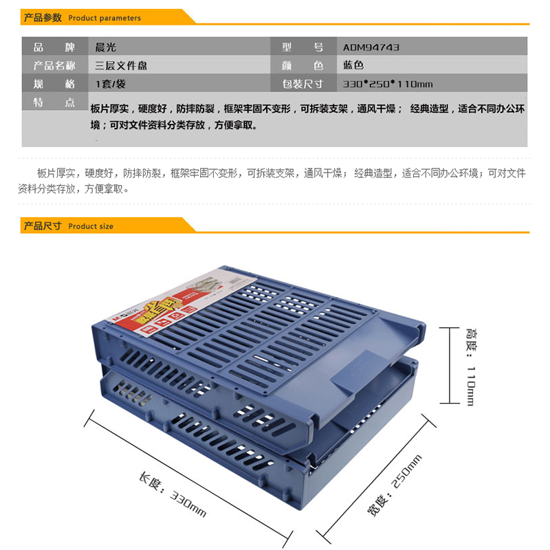 晨光(M&G) ADM94743 三層文件盤文件欄文件架文件座(藍色)