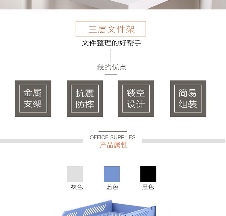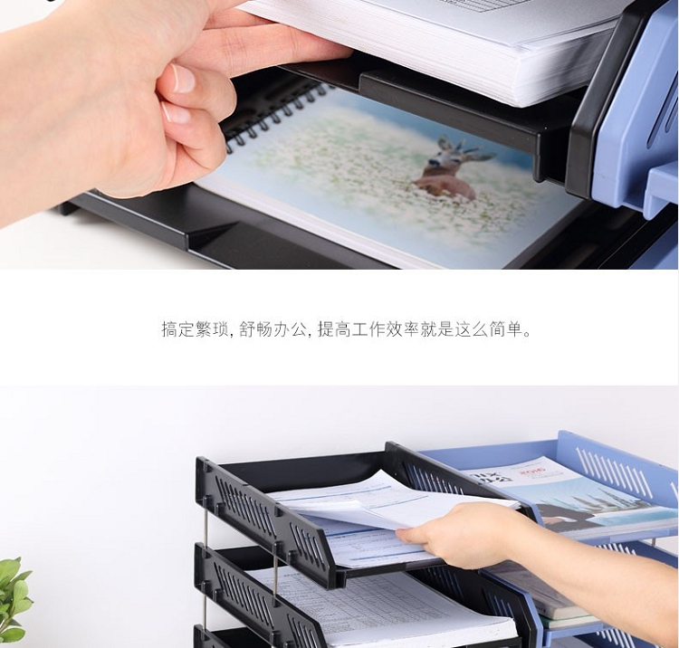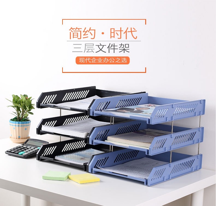 齊心(COMIX) B2060 穩(wěn)固型三層文件盤文件座文件框文件架(灰色)