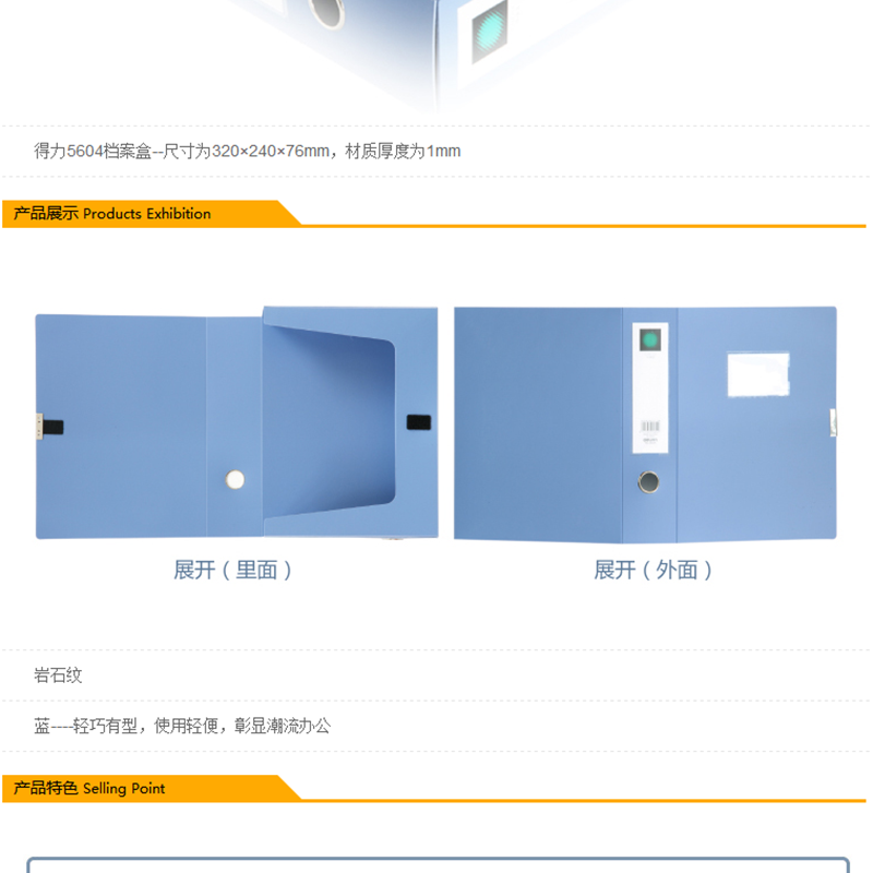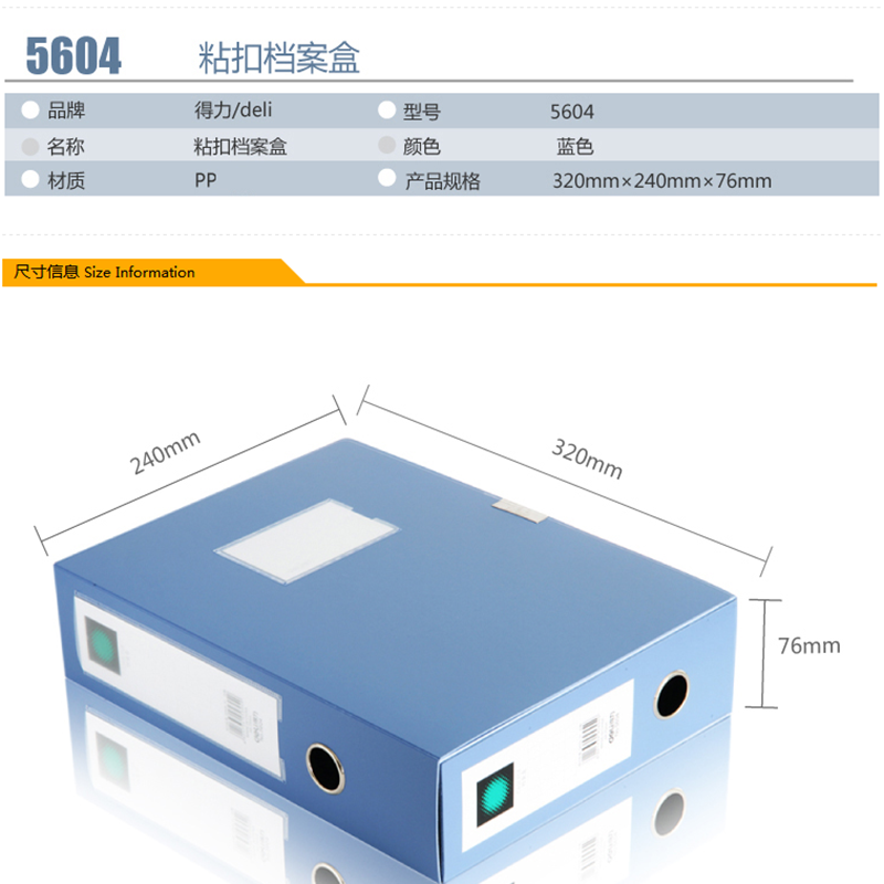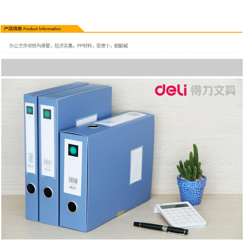 得力(deli) 5604 PP材料耐用型粘扣檔案盒 A4 75mm