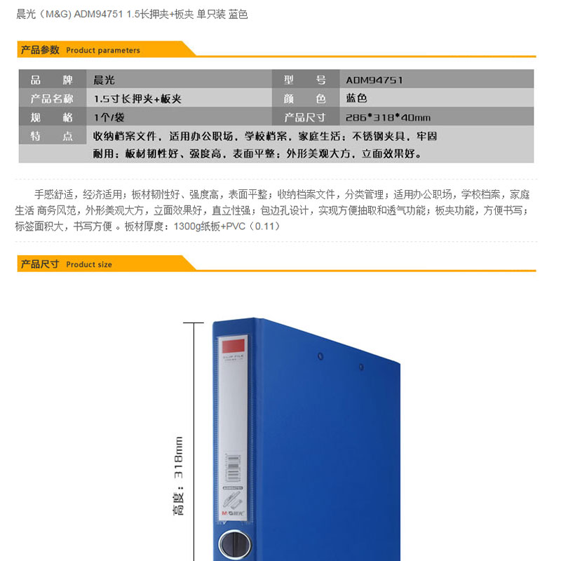 晨光(M&G) ADM94751B 1.5長押夾/文件夾+板夾