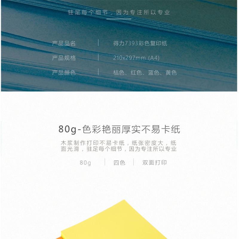 得力(deli) 7393 彩色復(fù)印紙A4/80g 100張/包(黃色)