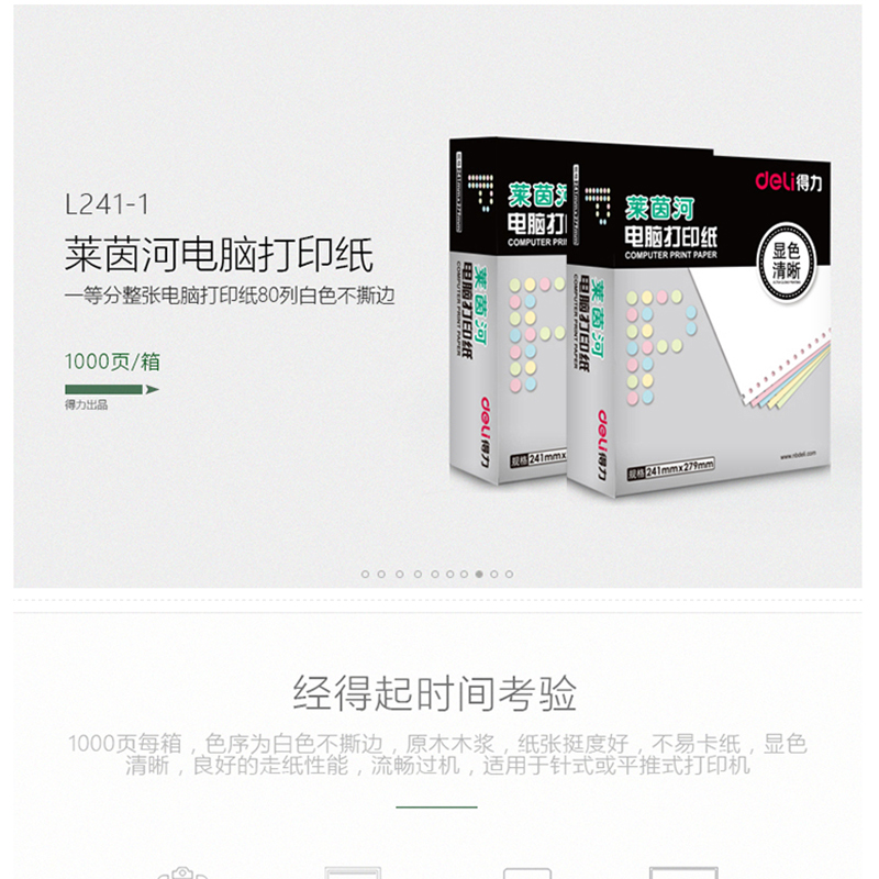 得力(deli) L241-1 萊茵河一聯(lián)電腦打印紙(整張全白不撕邊 1000頁/箱)