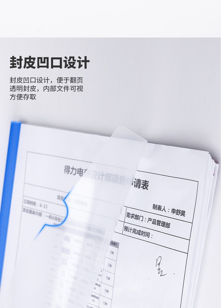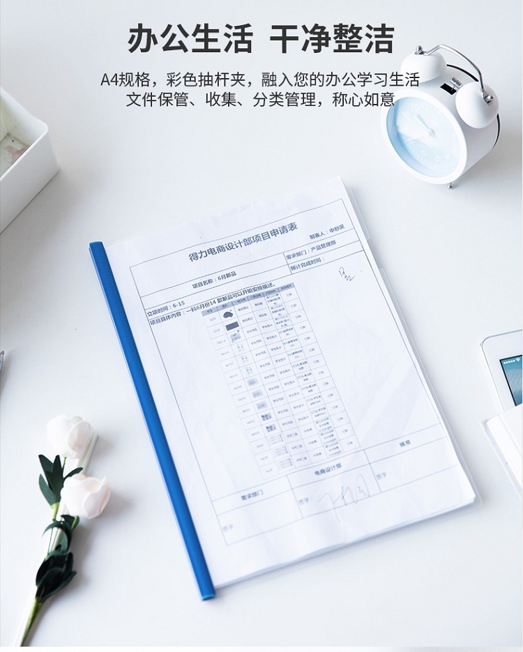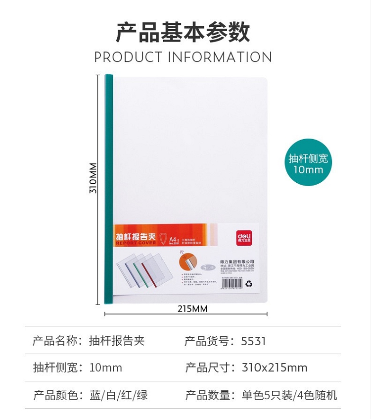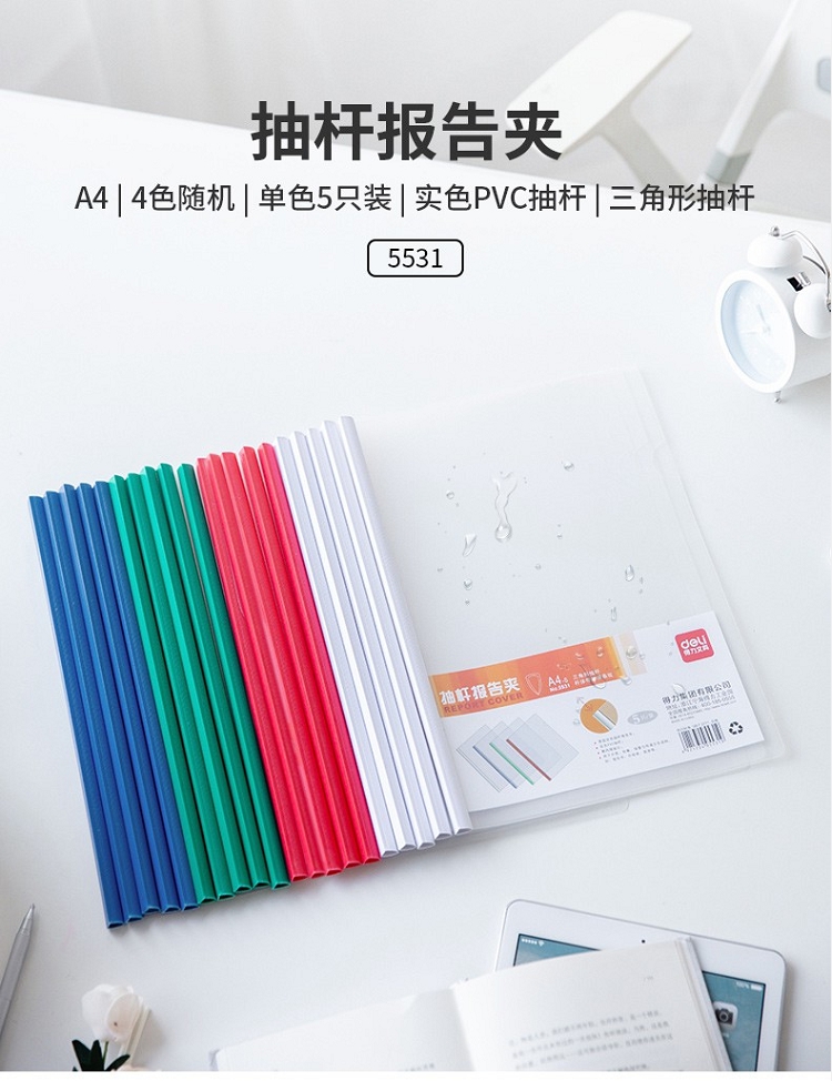 得力(deli) 5531 A4透明PP抽桿文件夾報告夾5個/包顏色隨機