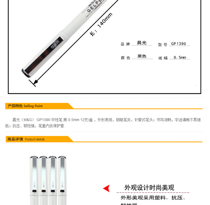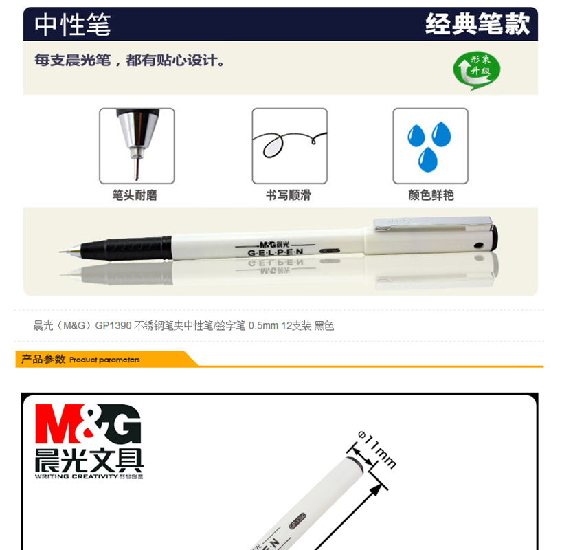 晨光(M&G) 0.5mm不銹鋼筆夾中性筆 簽字筆GP1390/12支裝 (藍色)