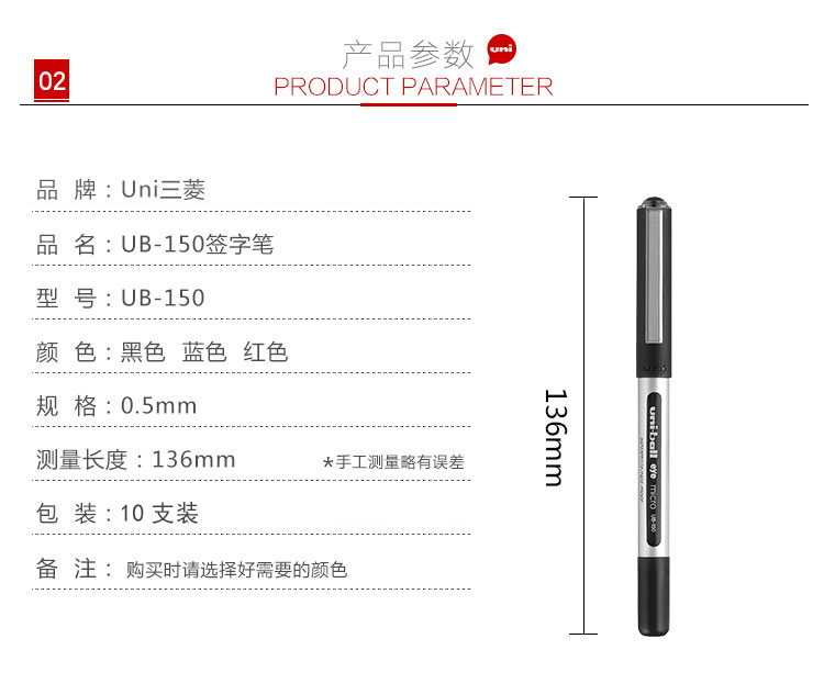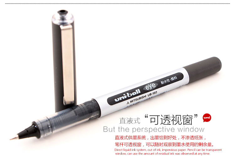 三菱(uni)UB-150(可透視)中性筆 簽字筆0.5mm 10支/盒 (黑色)