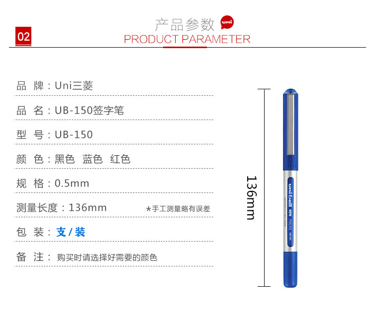 三菱(uni)UB-150(可透視)中性筆 簽字筆0.5mm 單支 (藍(lán)色)