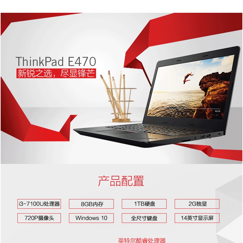 聯(lián)想(ThinkPad) E470 (20H1A037CD)14英寸筆記本電腦(i3-7100U/8G/1T/2G獨顯)