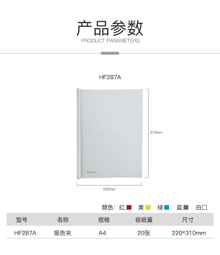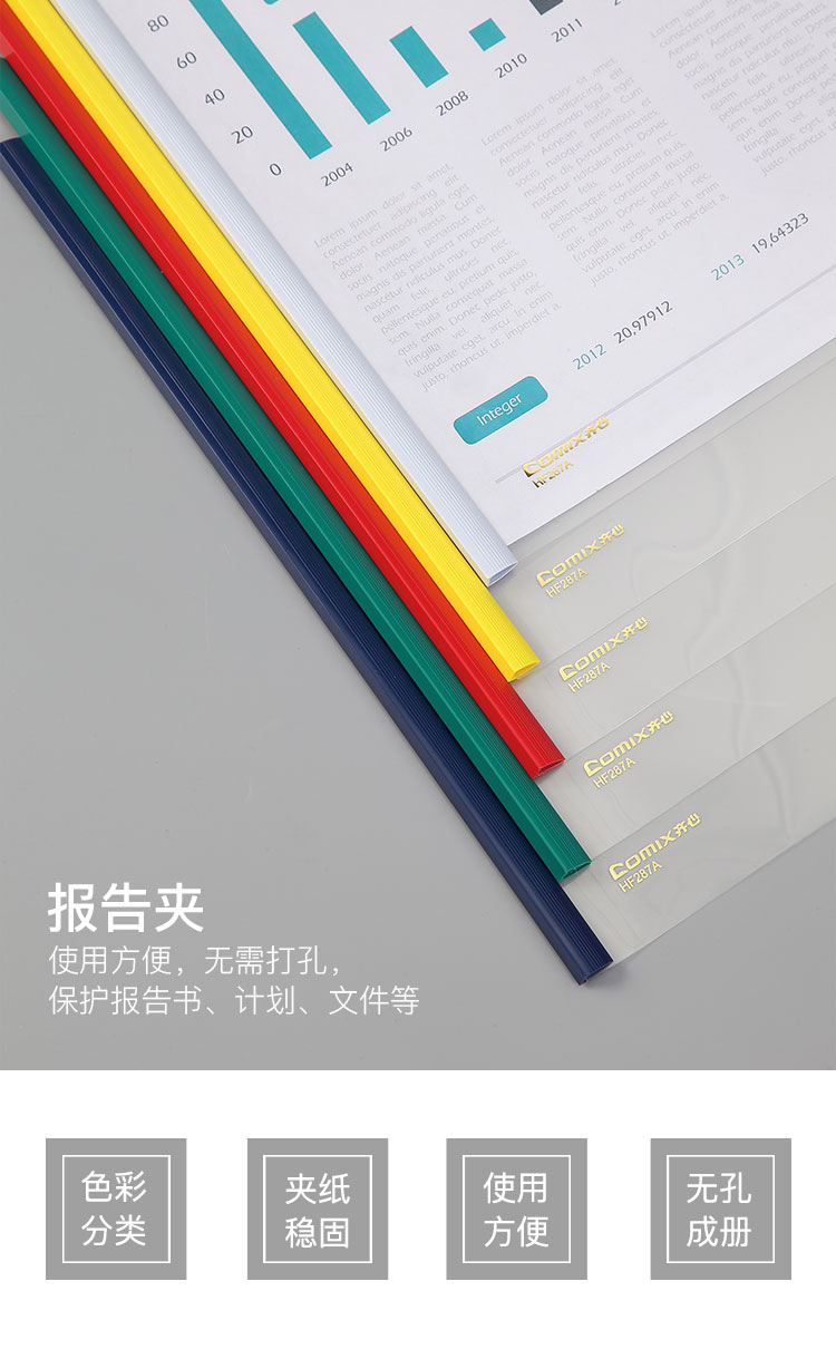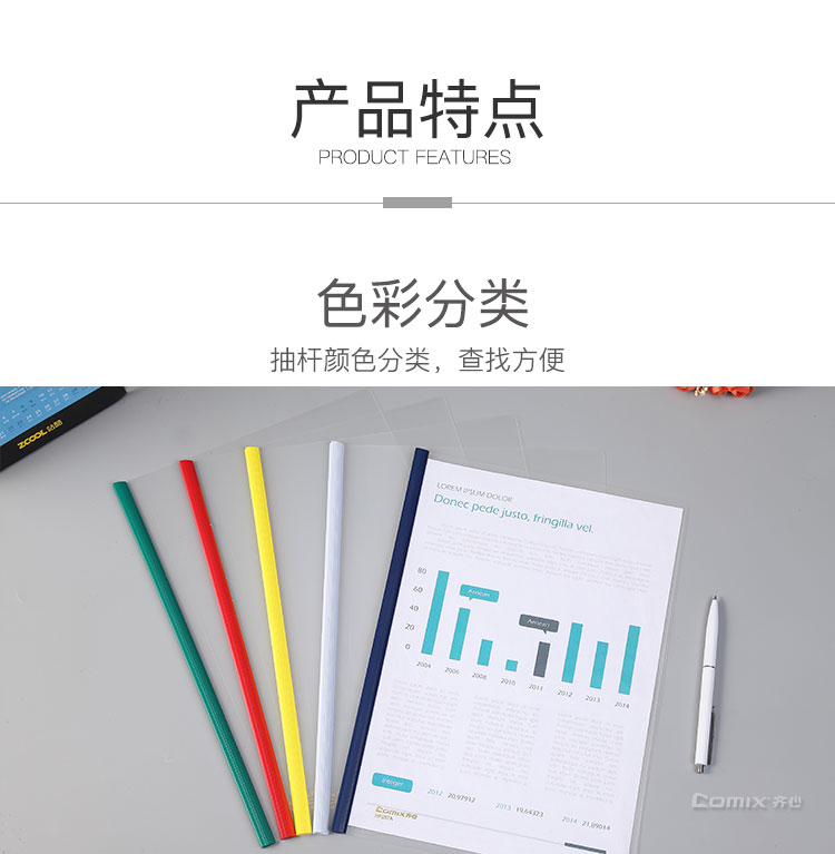 齊心(COMIX) HF287A A4抽桿夾/文件夾/報(bào)告夾/拉桿夾 彩色 5個/包