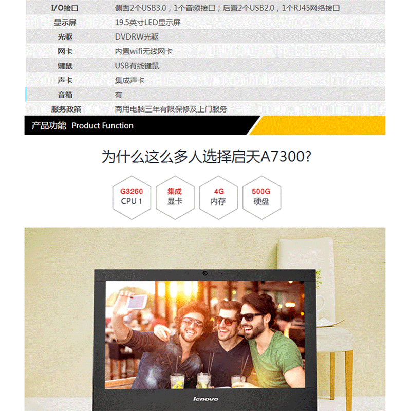 聯(lián)想(Lenovo) A7300 G3260 商務辦公電腦一體機 19.5英寸 4G內存 500G硬盤 集成顯卡