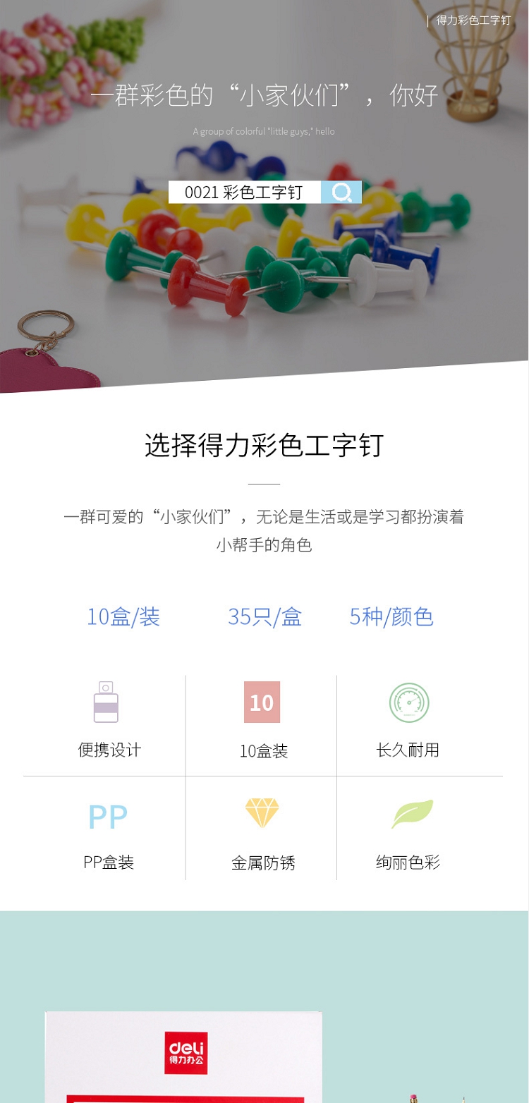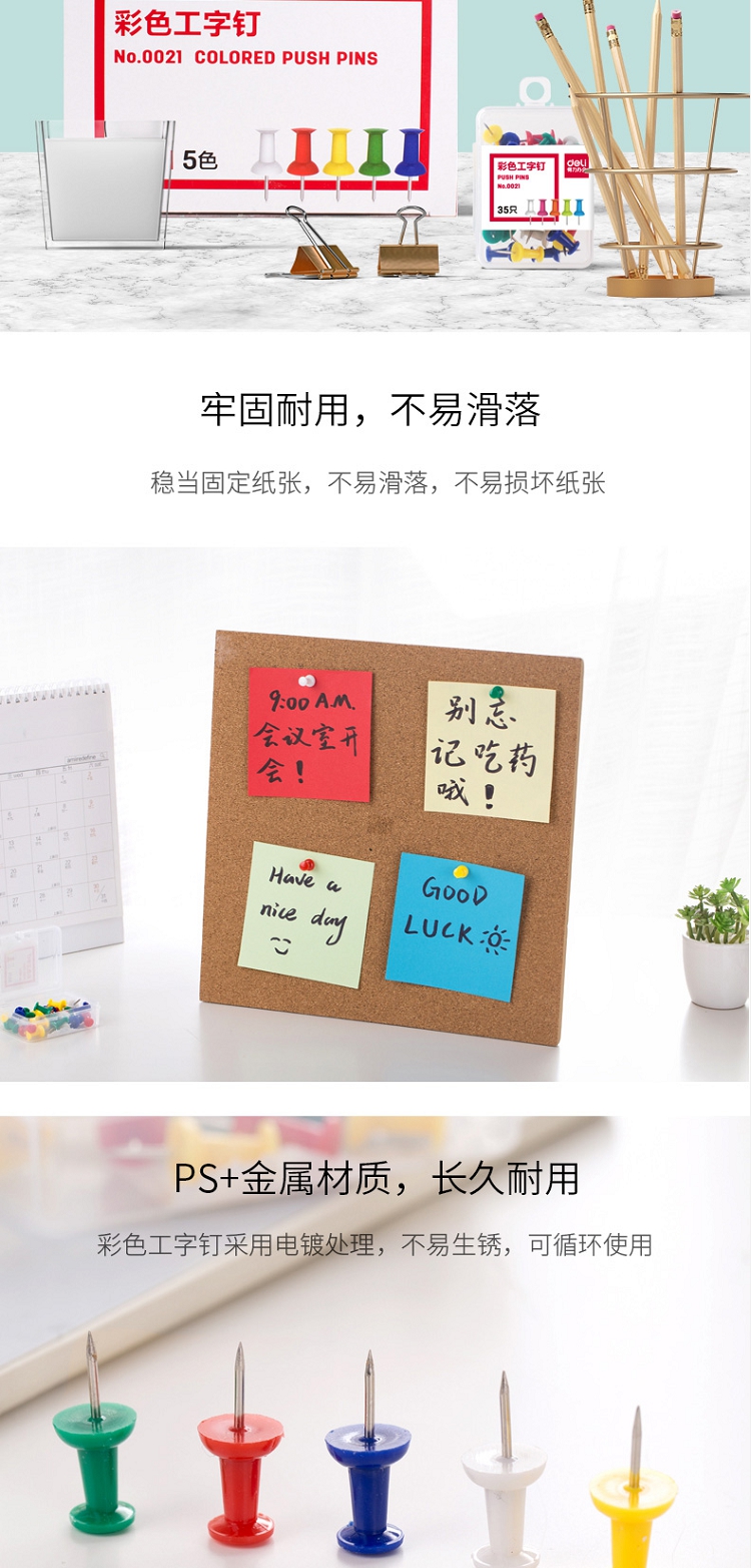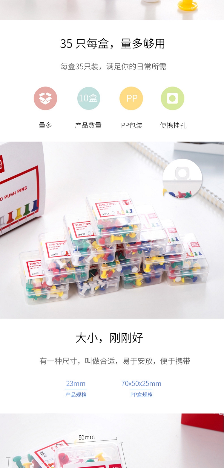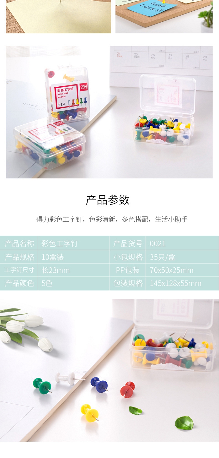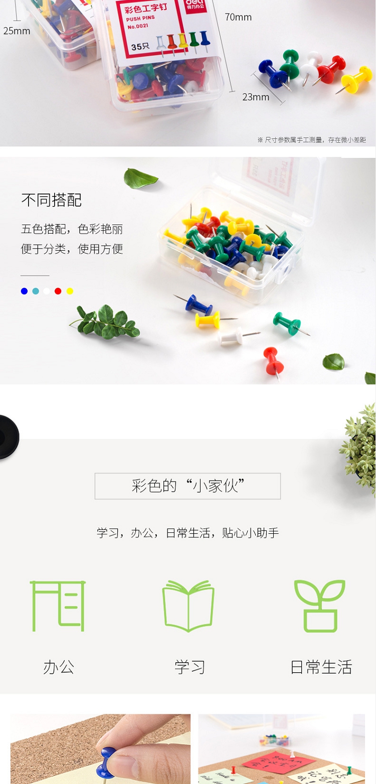 得力(deli) 0021 PP盒裝彩色工字釘 35枚/盒