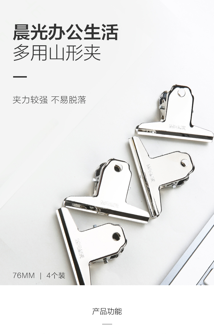 晨光(M&G) ABS92637 3#山形金屬不銹鋼票據(jù)夾 76mm(ABS92637/4只袋)