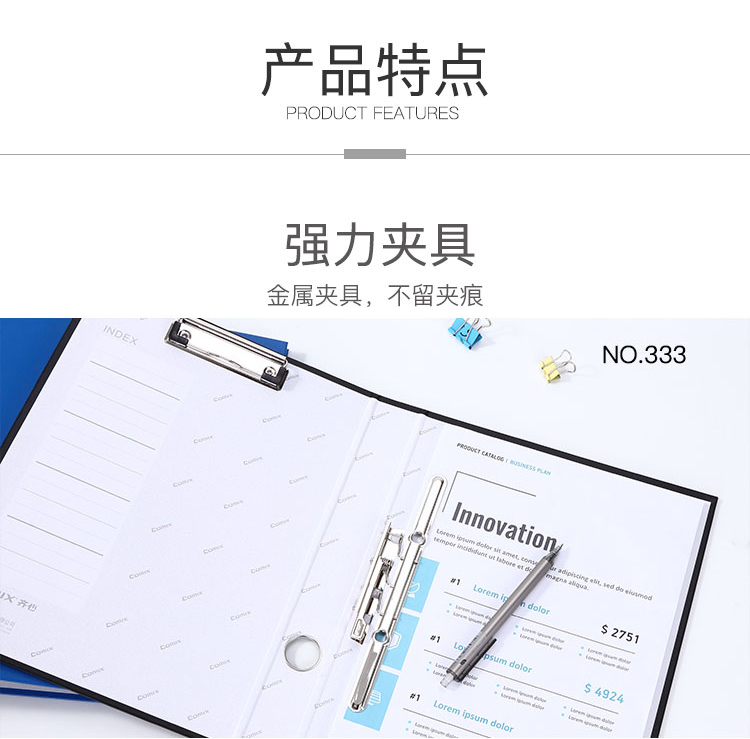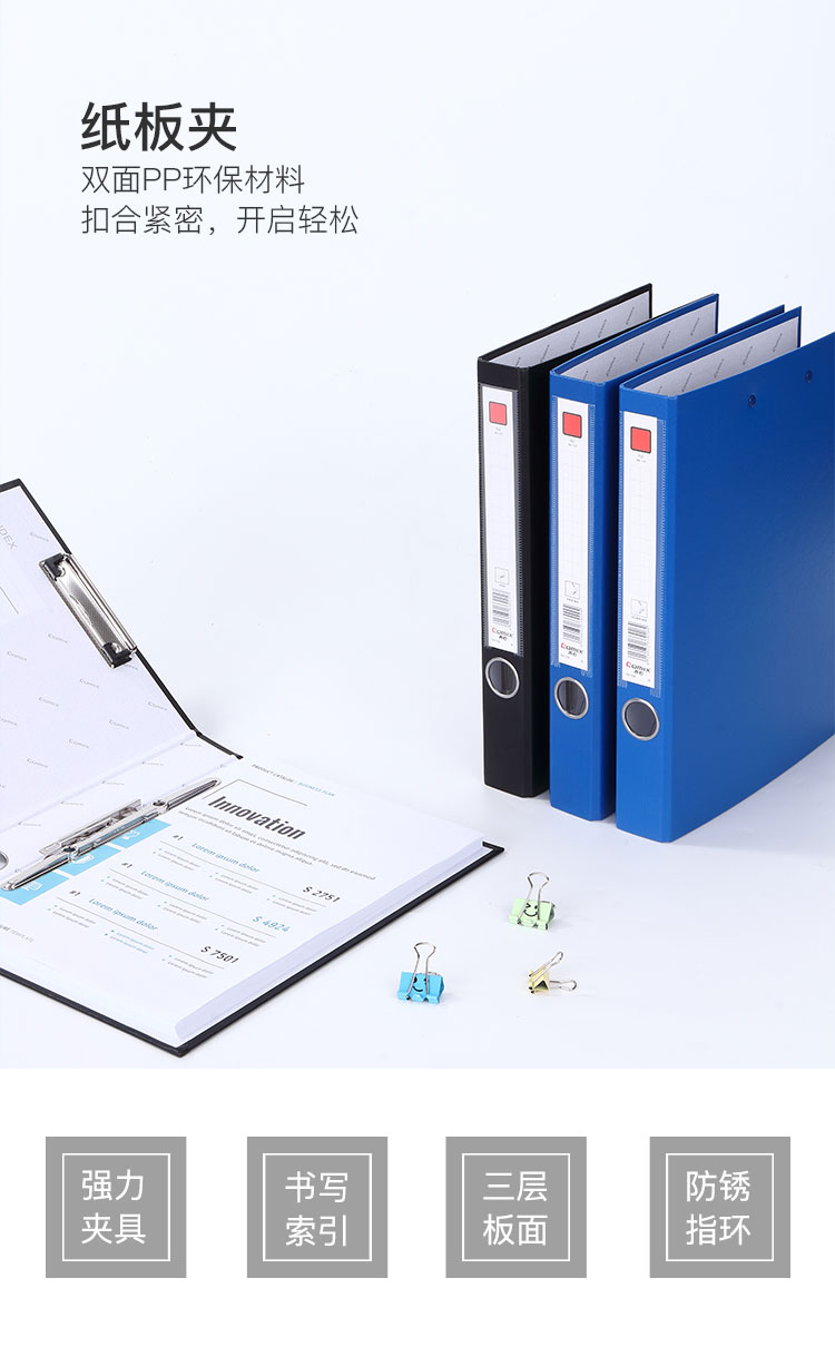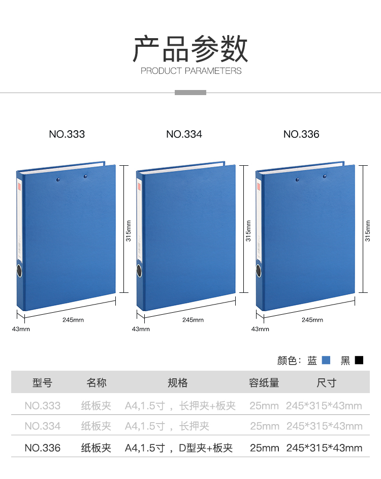 齊心(COMIX) NO.336 辦公必備紙板夾 A4 1.5寸 2孔D型夾+板夾