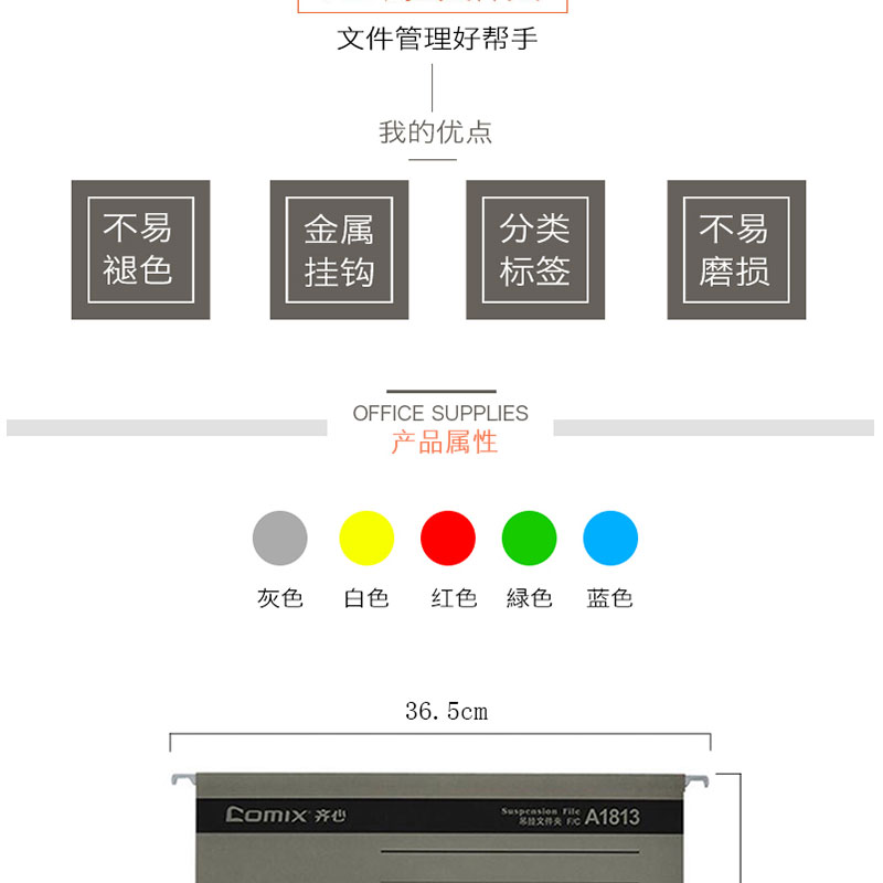 齊心(COMIX) A1813 易查找吊掛夾 F/C 紙質(zhì) 顏色隨機(jī) 25個(gè)/盒