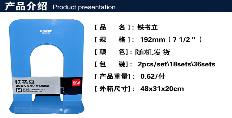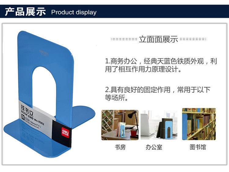 得力(deli) 9262 鐵書立(7.5寸/192mm)2片/付(藍色)