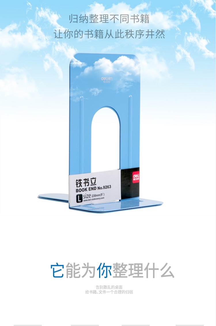得力(deli) 9263 鐵書立(9寸/230mm)2片/付(黑色)