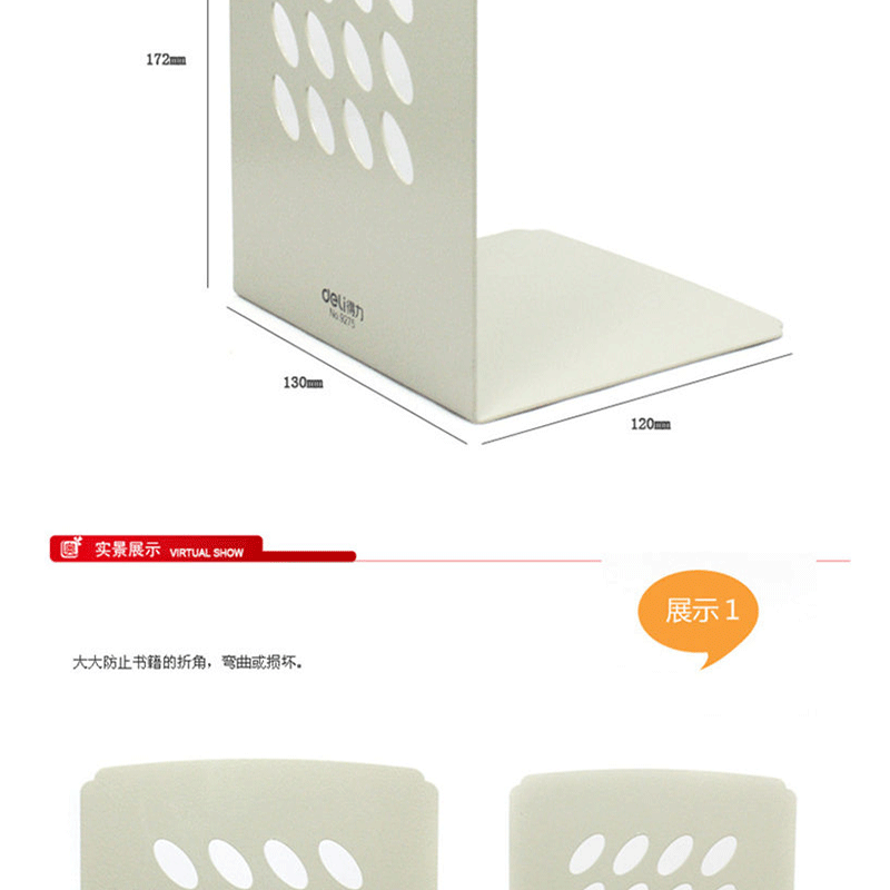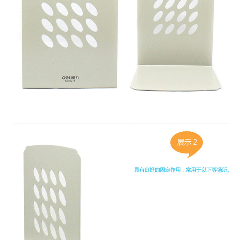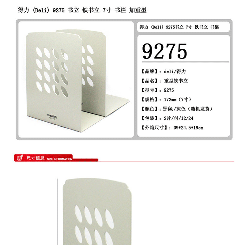 得力(deli) 9275 鐵書立(7寸)辦公鐵書架 2片/付(灰色)