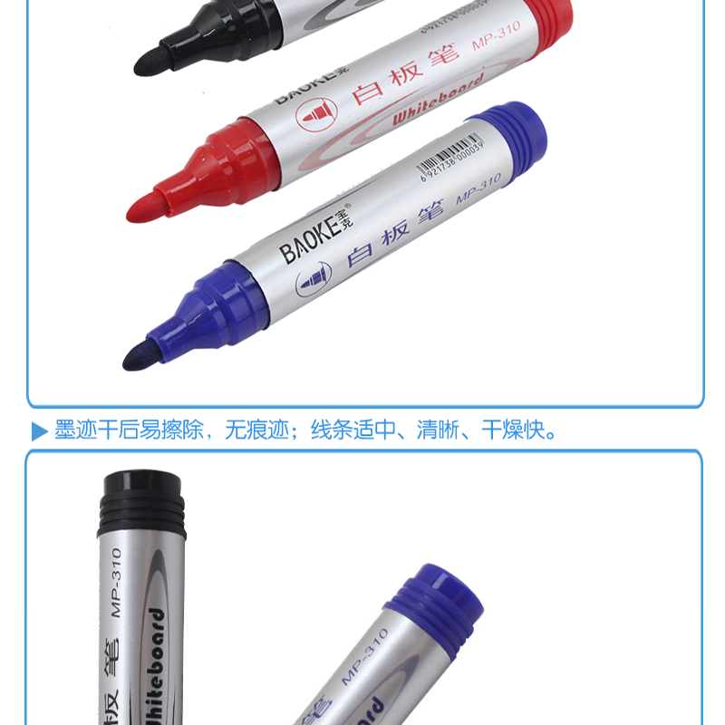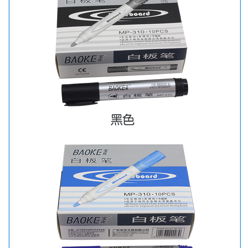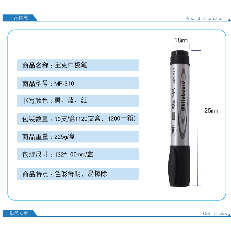 寶克(BAOKE) MP-310 大容量白板筆 10支/盒(黑色)