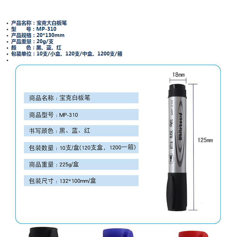 寶克(BAOKE) MP-310 大容量白板筆 10支/盒(藍(lán)色)