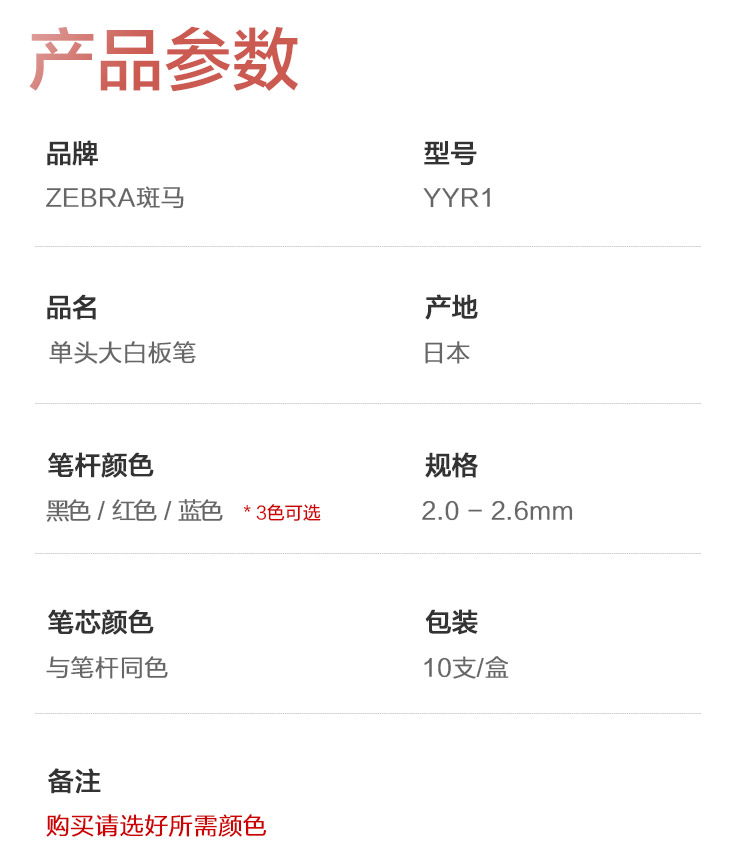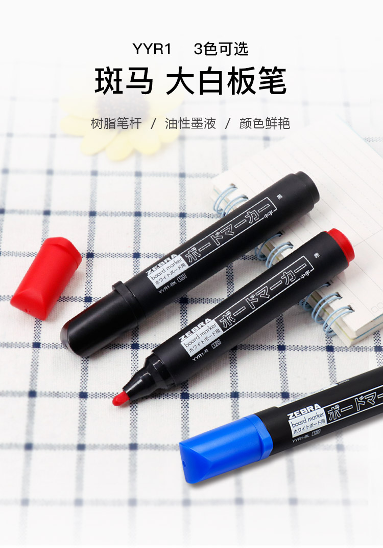 斑馬(ZEBRA) YYR1 白板筆 可擦筆 圓嘴環(huán)保型(黑色) 10支/盒