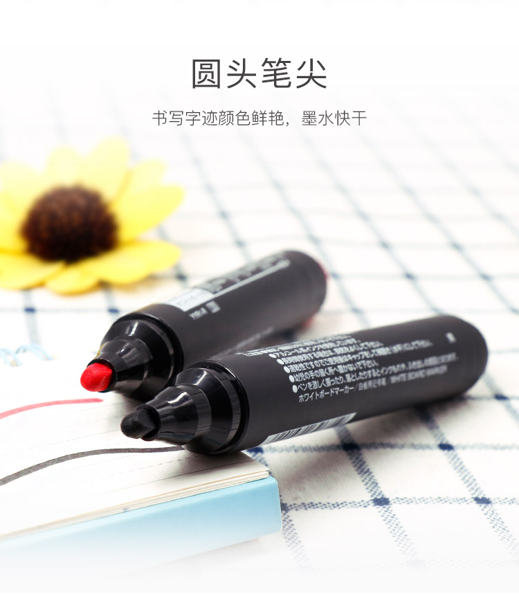墨水屬速干性墨水、色深、鮮明,環(huán)保型,書寫輕松流暢,擦除簡(jiǎn)單,一抹就干凈,是您辦公的好幫手,筆套有防滾動(dòng)裝置。 ?