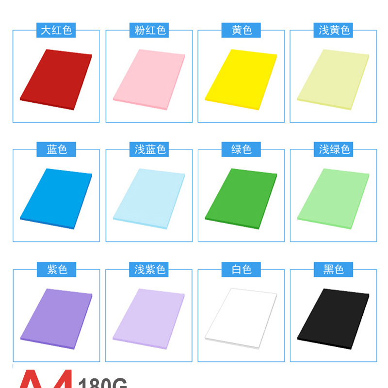 • 白色A4 黑色A4 黃色A4 淺黃A4 藍(lán)色A4 淺藍(lán)A4 綠色A4 淺綠A4 紫色A4 淺紫A4 大紅色A4 粉色A4