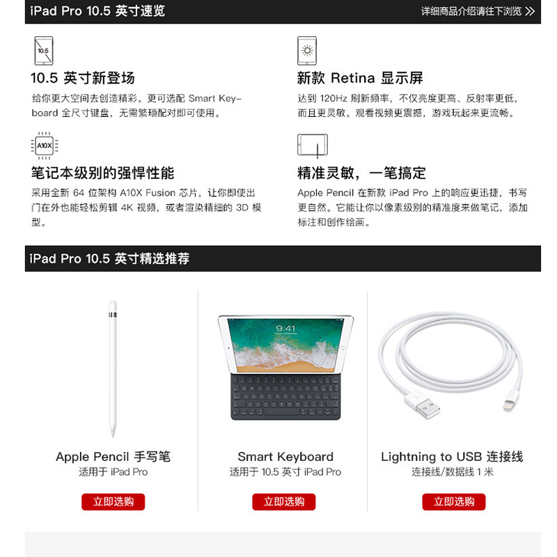 蘋果 iPad Pro 平板電腦 (64G WLAN版/A10X芯片/Retina屏/Multi-Touch技術(shù) MQDY2CH/A) (銀色)