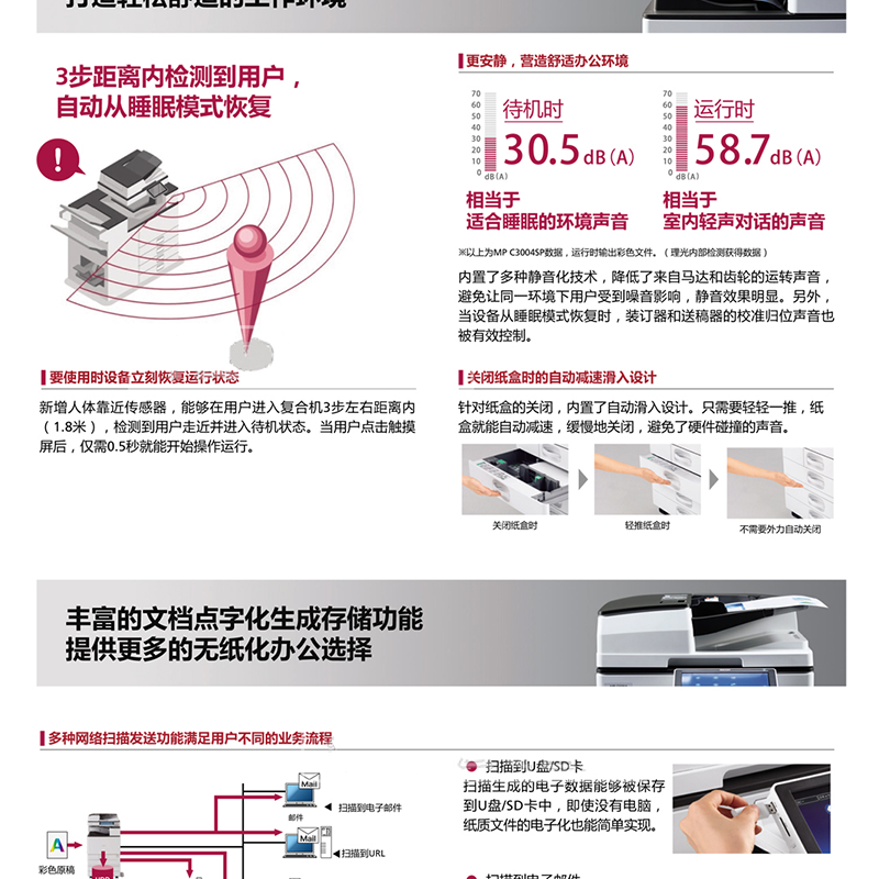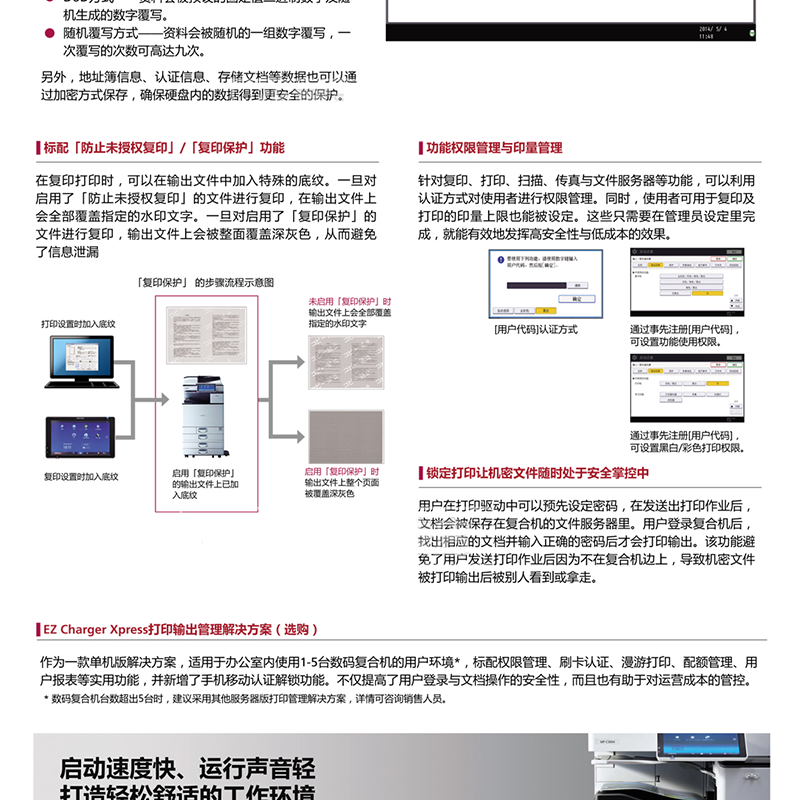 30頁/分鐘,標(biāo)配2GB內(nèi)存+2GB SOP系統(tǒng)內(nèi)存,250GB硬盤,預(yù)熱時(shí)間僅需要25秒 ?